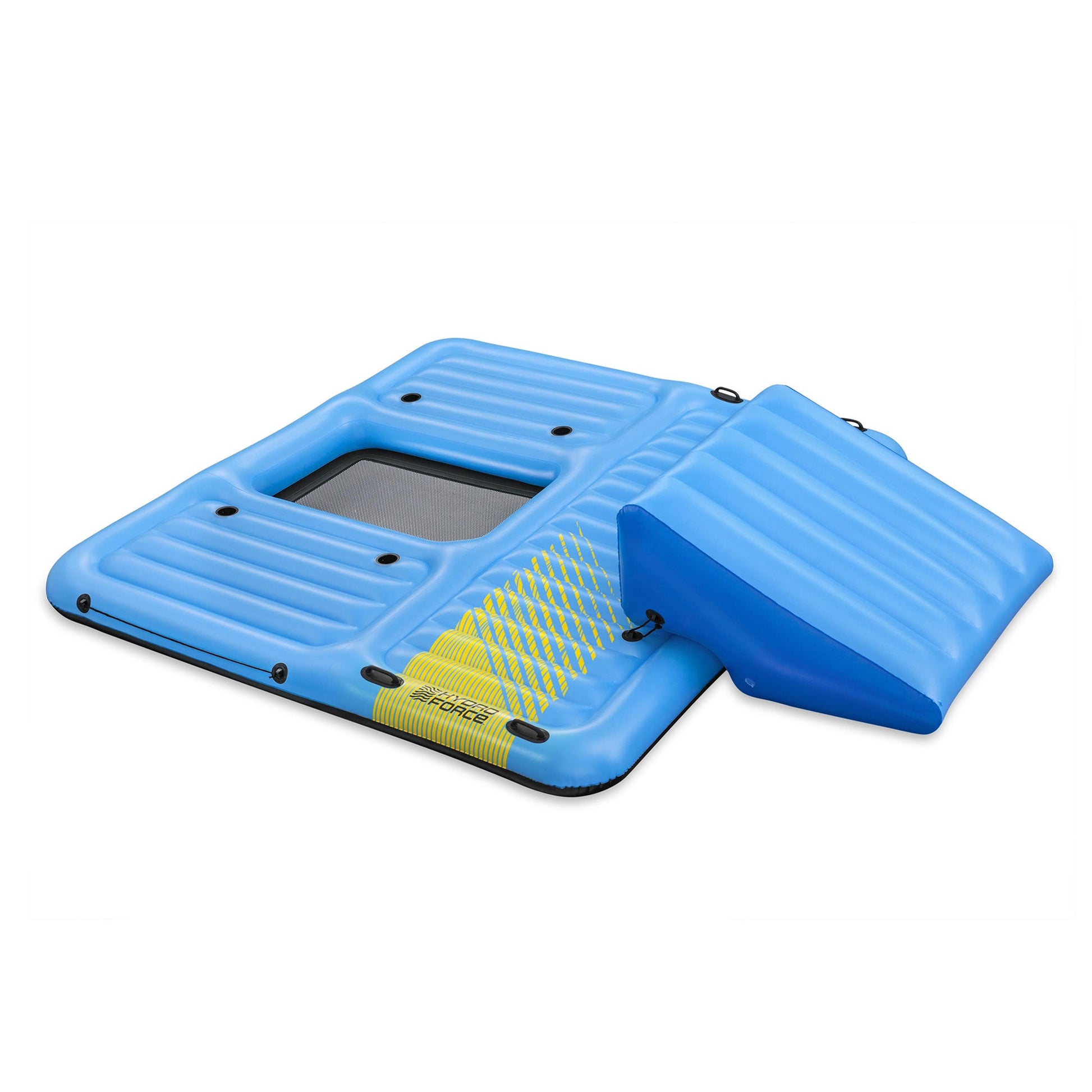 Measuring an impressive 11 feet and 11 inches in length and 9 feet and 8 inches in width, this inflatable island offers a spacious playground for up to 5 people, with a hefty weight capacity of 1,102 pounds, ensuring everyone can join in the aquatic excitement. Crafted from Inflata-Shield material, this activity island is a testament to durability. It resists punctures, limits stretching, and enhances grip, guaranteeing countless hours of enjoyment.