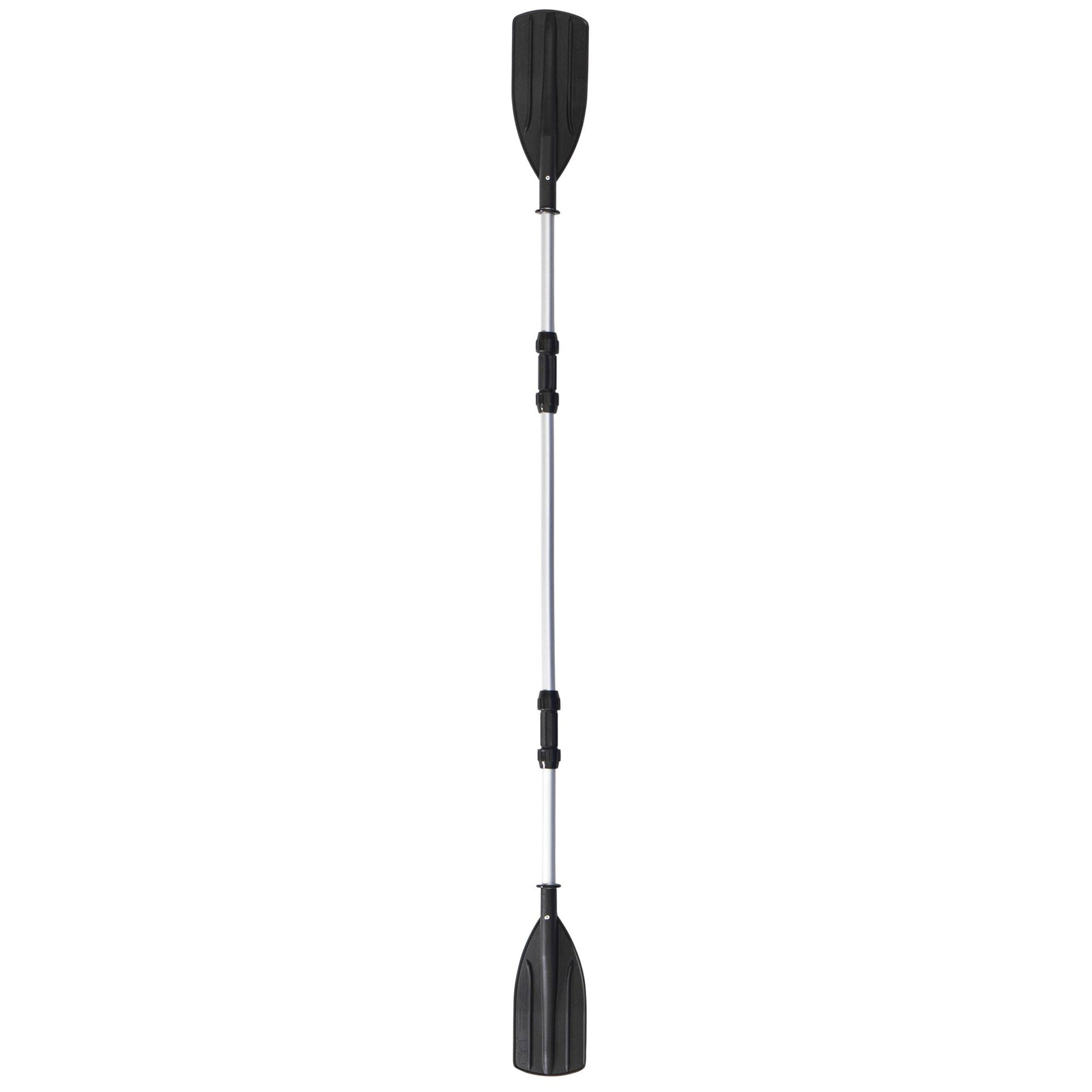 Including double-bladed oars that are aluminum, lightweight, and held flush by secure oar clasps, you can navigate the water with ease, while the removable fins also help with directional stability and increase speeds. The sturdy canvas handles on each side make moving the kayak a breeze. For storage, simply detach the fins from the kayak to get an ultra-compact, space-saving fold.
