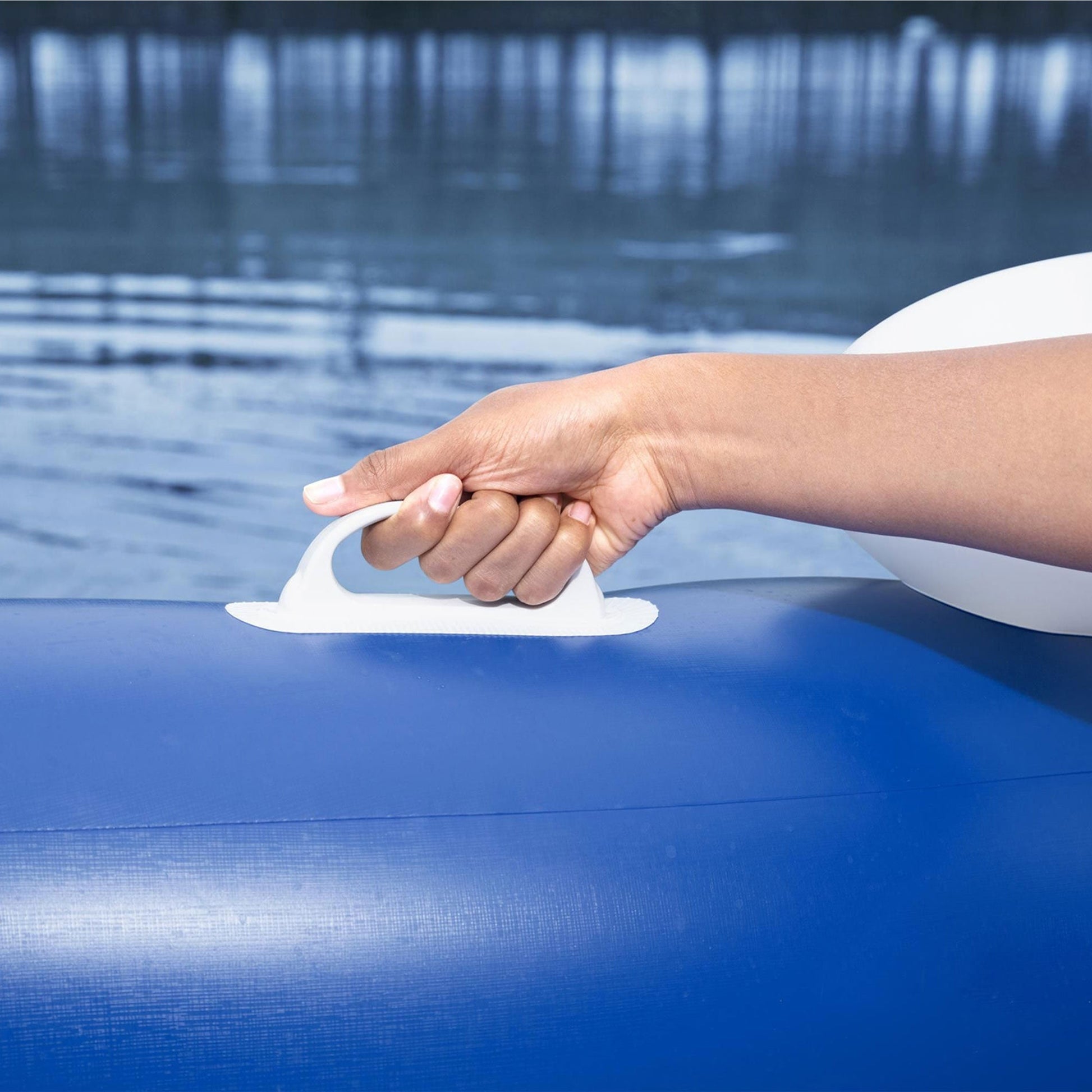Both rafts have all-around grab ropes and heavy-duty handles for added safety and to make transporting to and from the water a breeze. It'll be a party for all on the water with the Bestway Hydro-Force Innertube and Island Float.