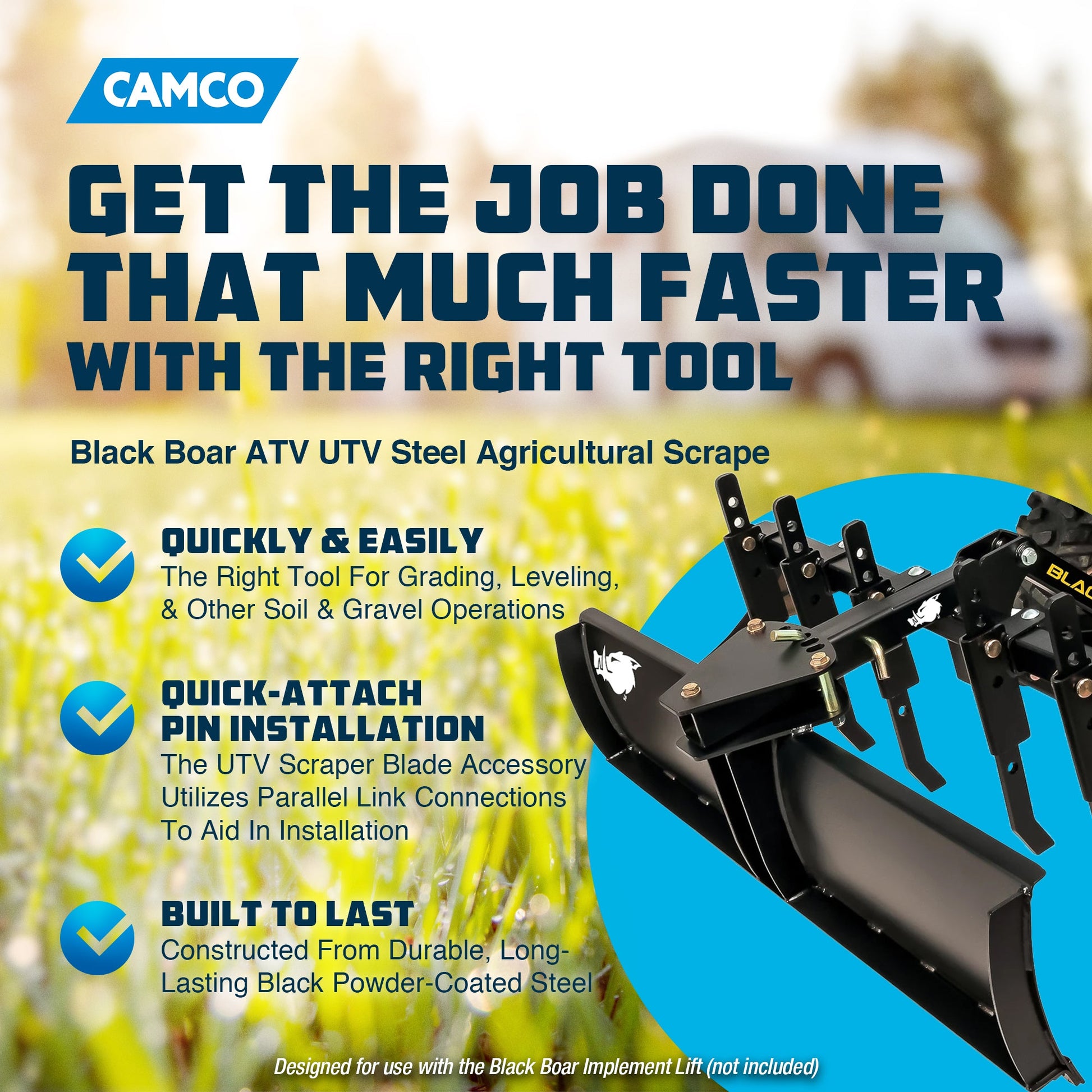 Get the job done that much faster with the right tool. The Black Boar ATV UTV Steel Agricultural Scrape Blade Implement Attachment is the right tool for grading, leveling, and other soil and gravel operations.
