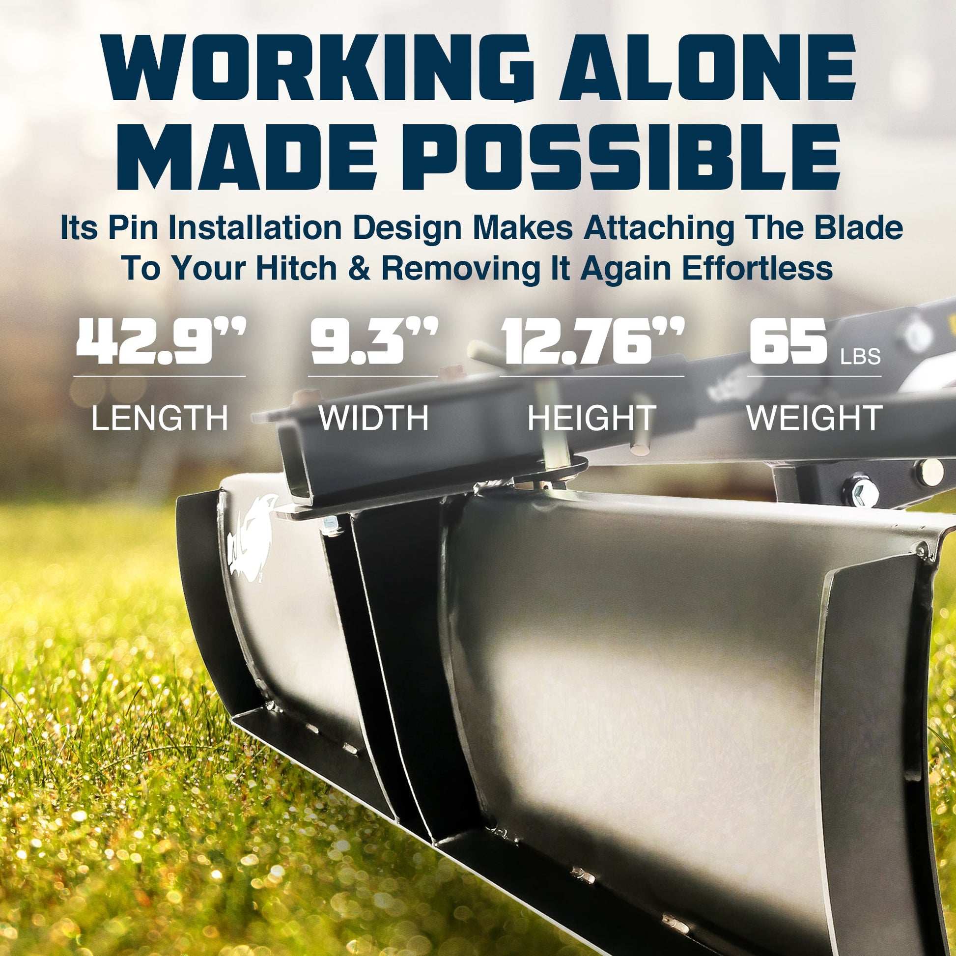 The atv scrape blade hitch attachment is made from thick steel with a protective, rustproof, powder-coated black finish. Its pin installation design makes attaching the blade to your hitch and removing it again effortless, even if you're working alone. Easily adjust the angle of the blade in either direction to fit your specific task's needs.