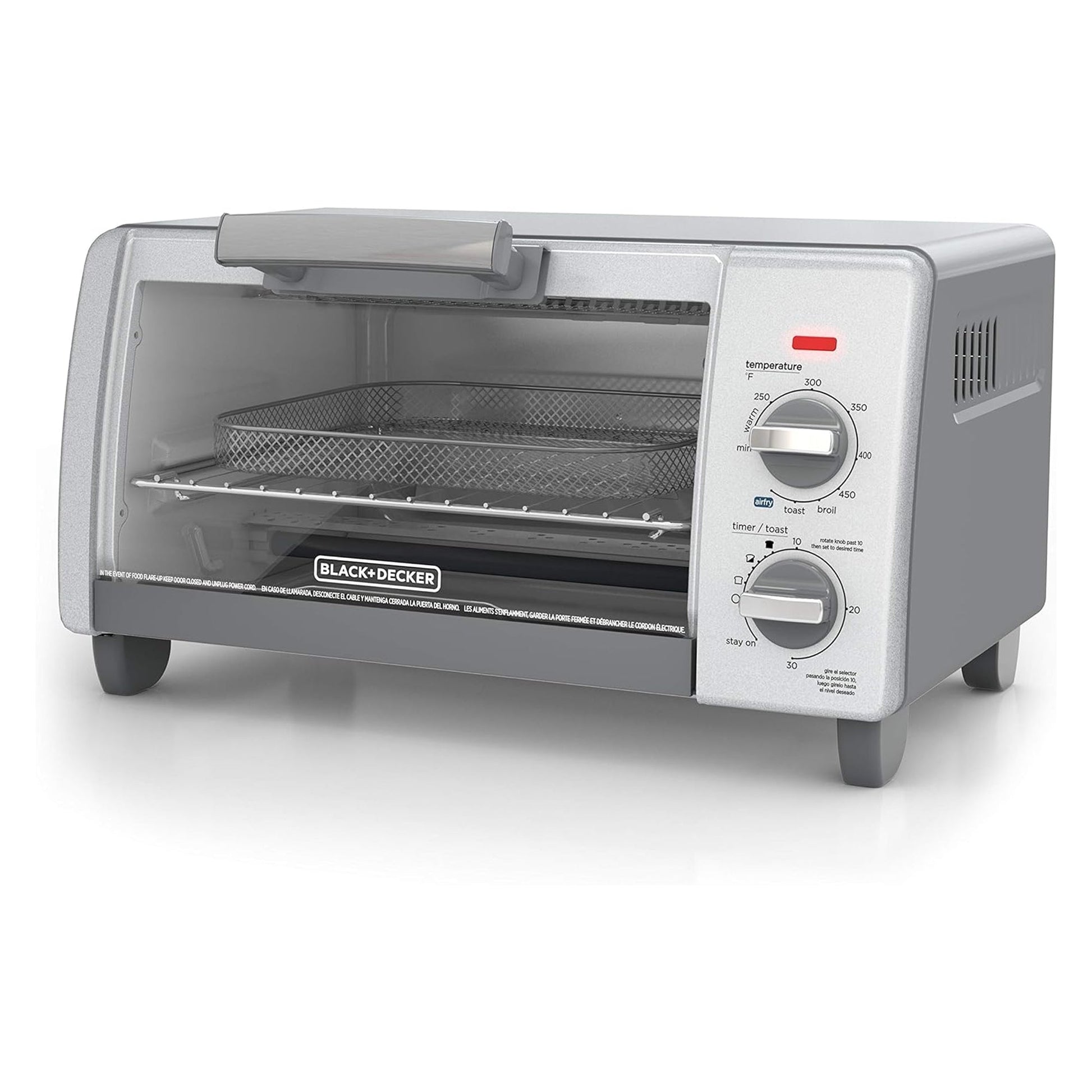 BLACK+DECKER Crisp N Bake Countertop Air Fryer 4 Slice Toaster Pizza Oven, Gray