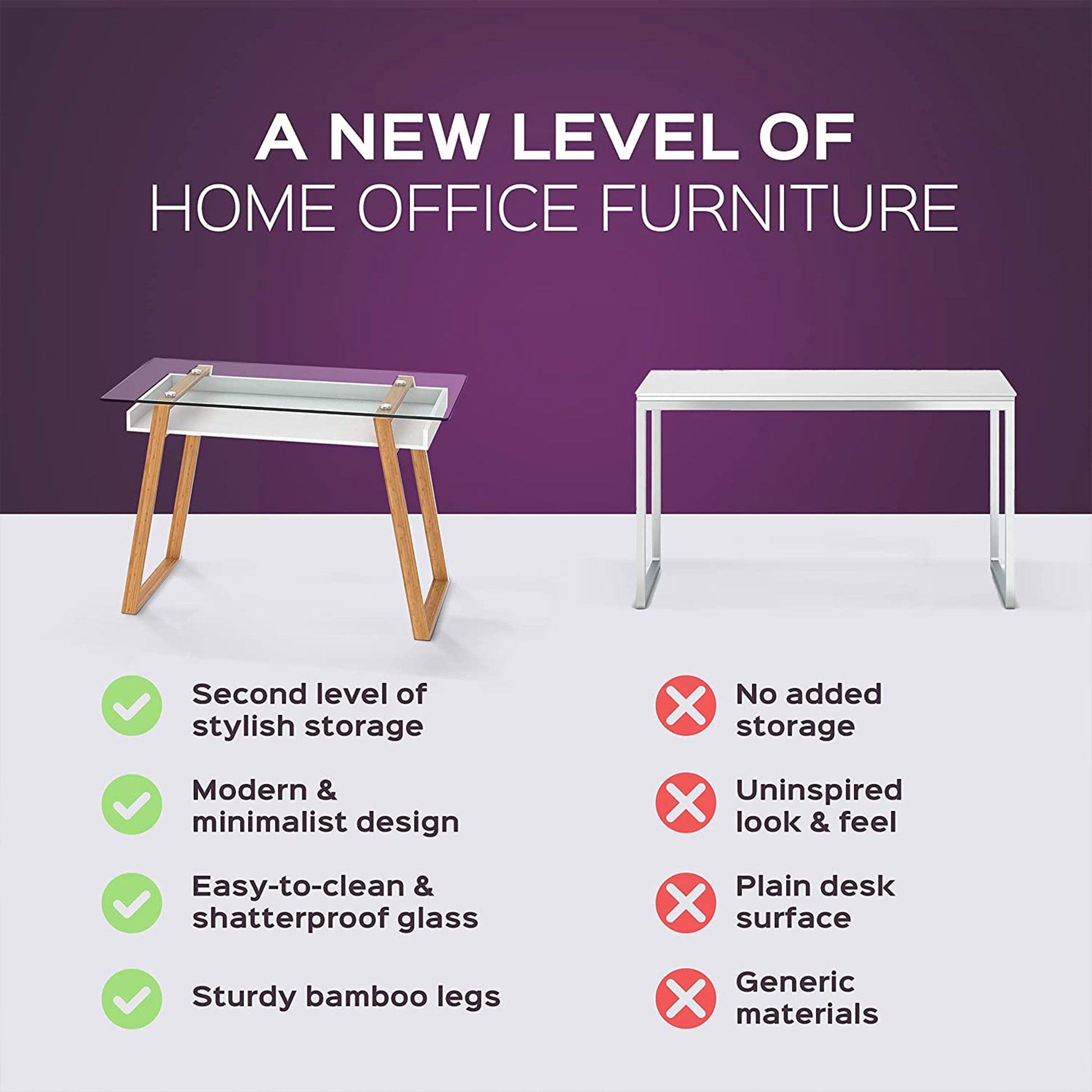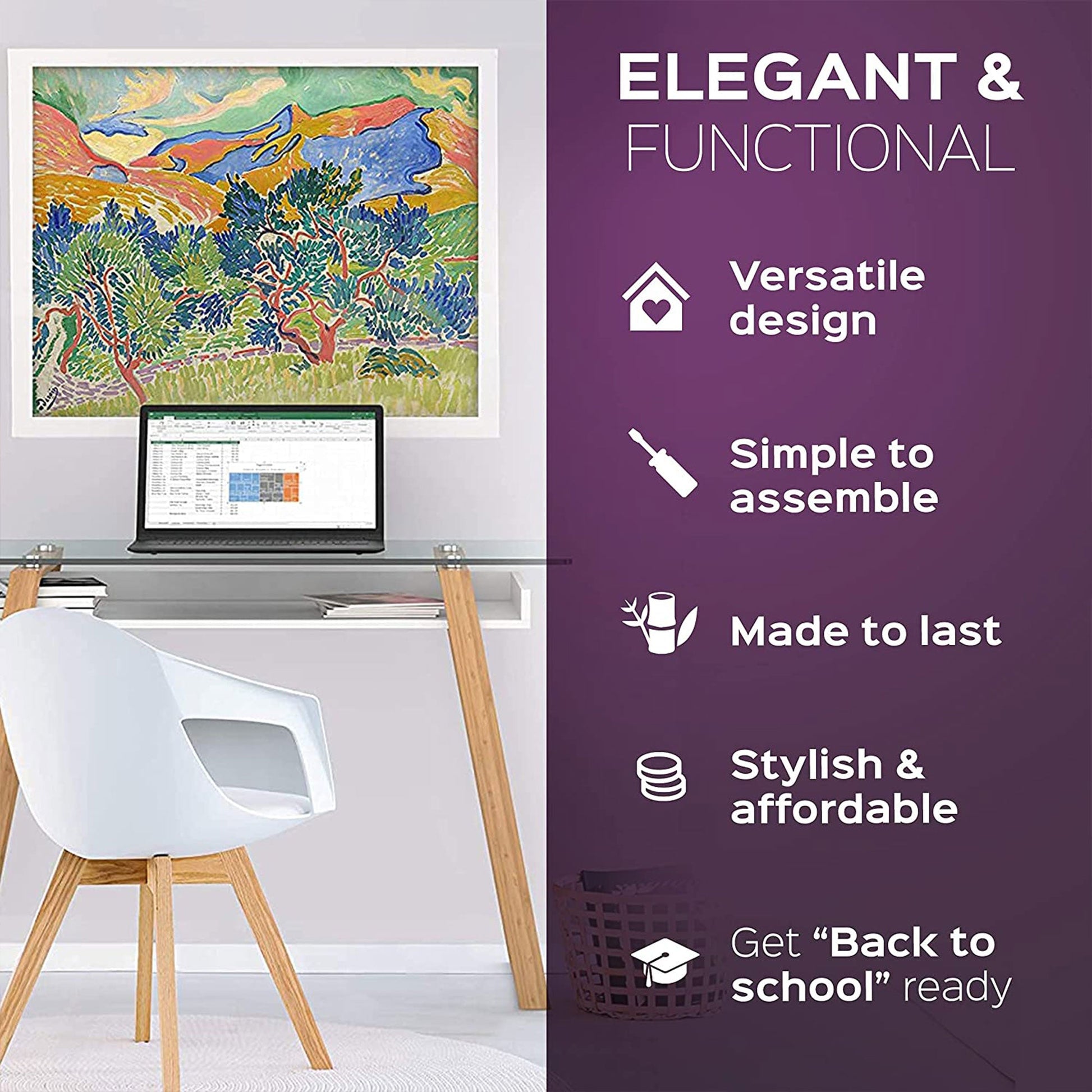 Made to last, the sturdy bamboo wood frame offers stability while the shatterproof glass top provides a hearty place to put your computer and accessories. As an added bonus, this school desk come with space underneath the desktop for your essentials like chargers, paper pads, writing tools, and more.