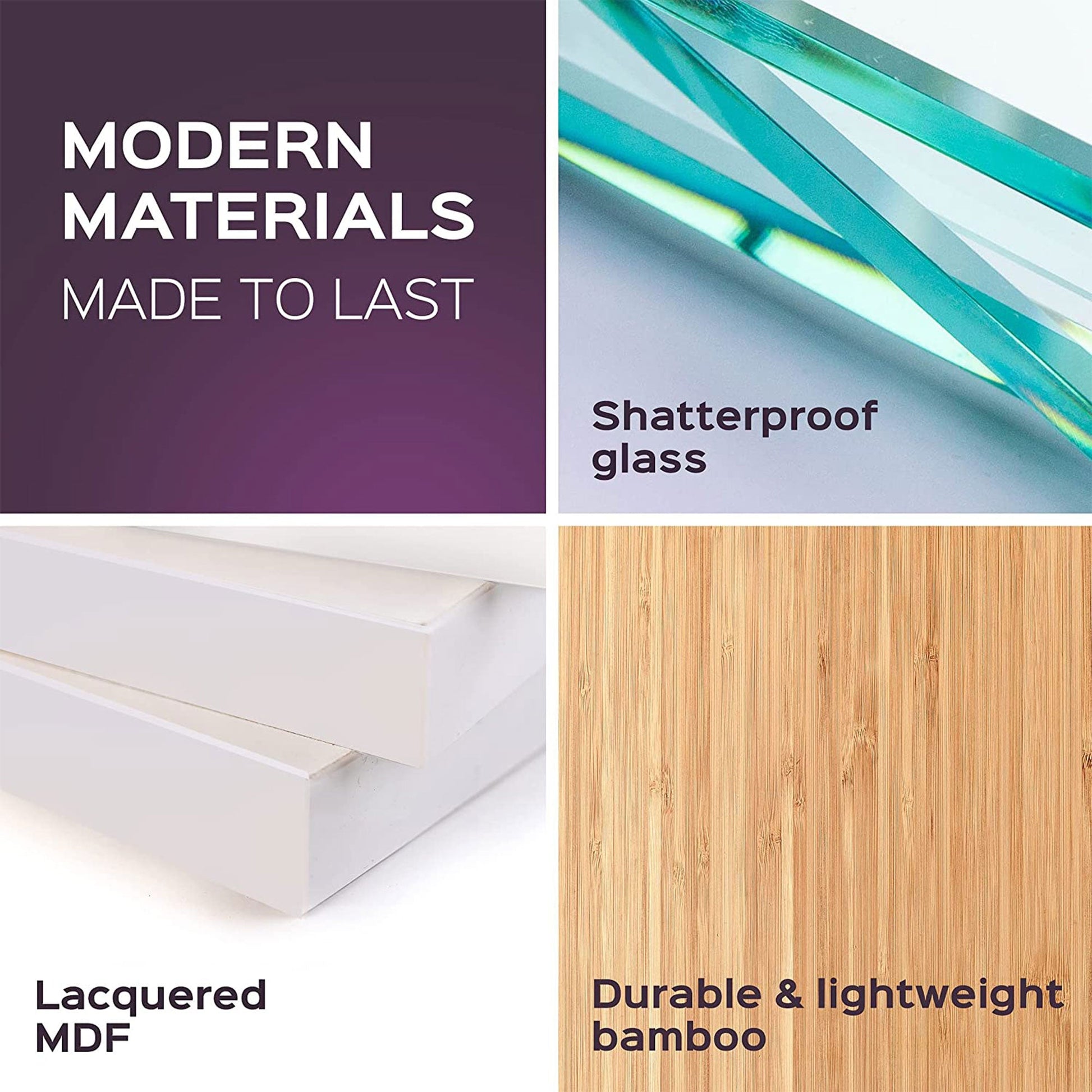 - Made to last with a sturdy bamboo wood frame and a hearty, shatterproof glass top