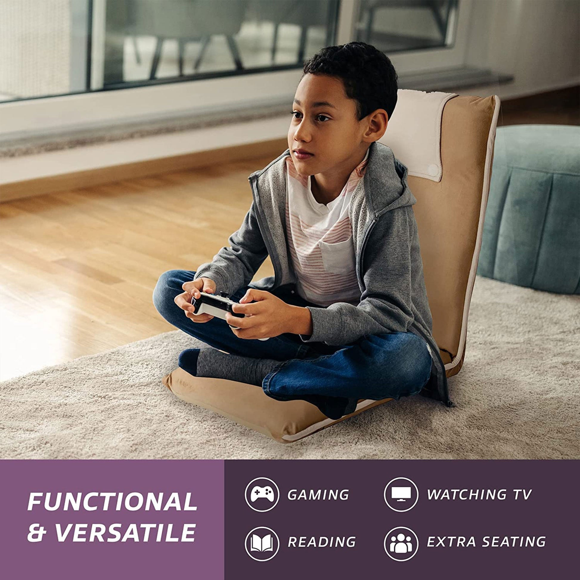bonVIVO Portable Padded Cushion Floor Chair Seat w/ Adjustable Back, Blue/Beige