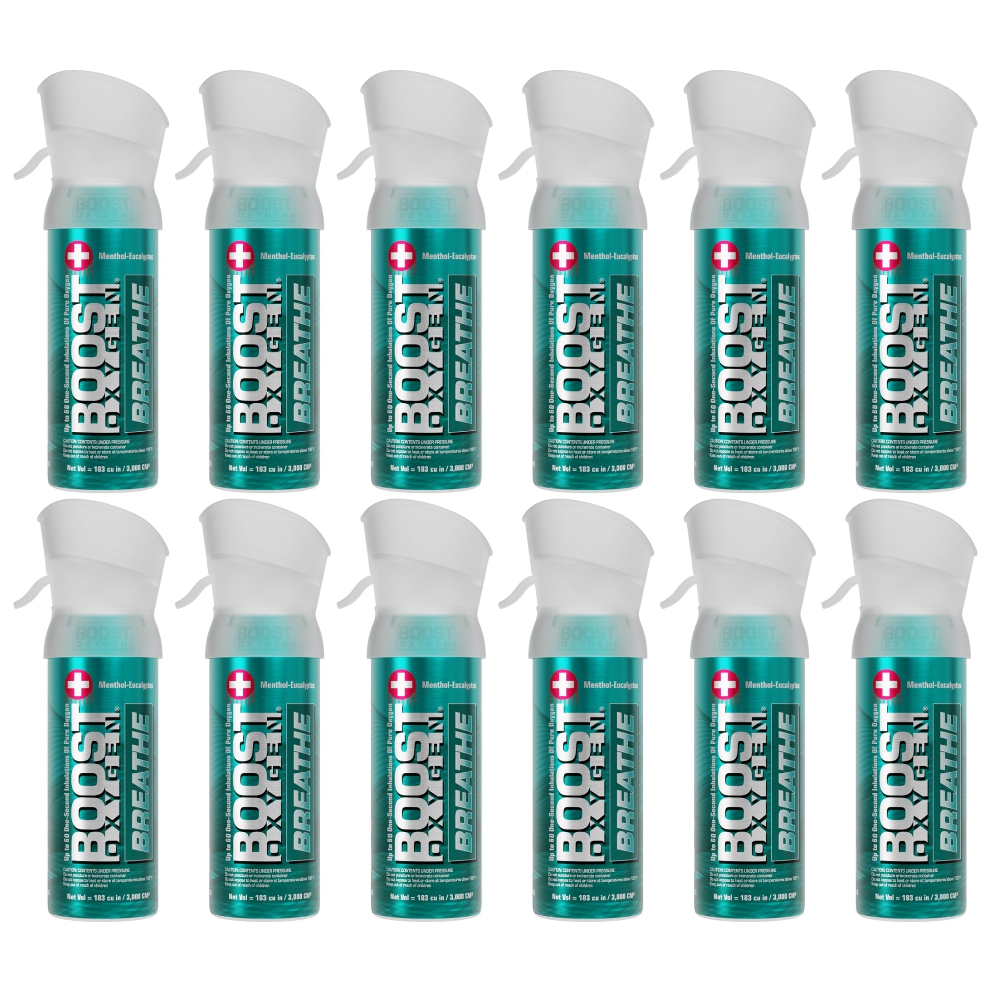 Boost Oxygen Pocket Size 3 Liter Respiratory Support Canister, Menthol (12 Pack)