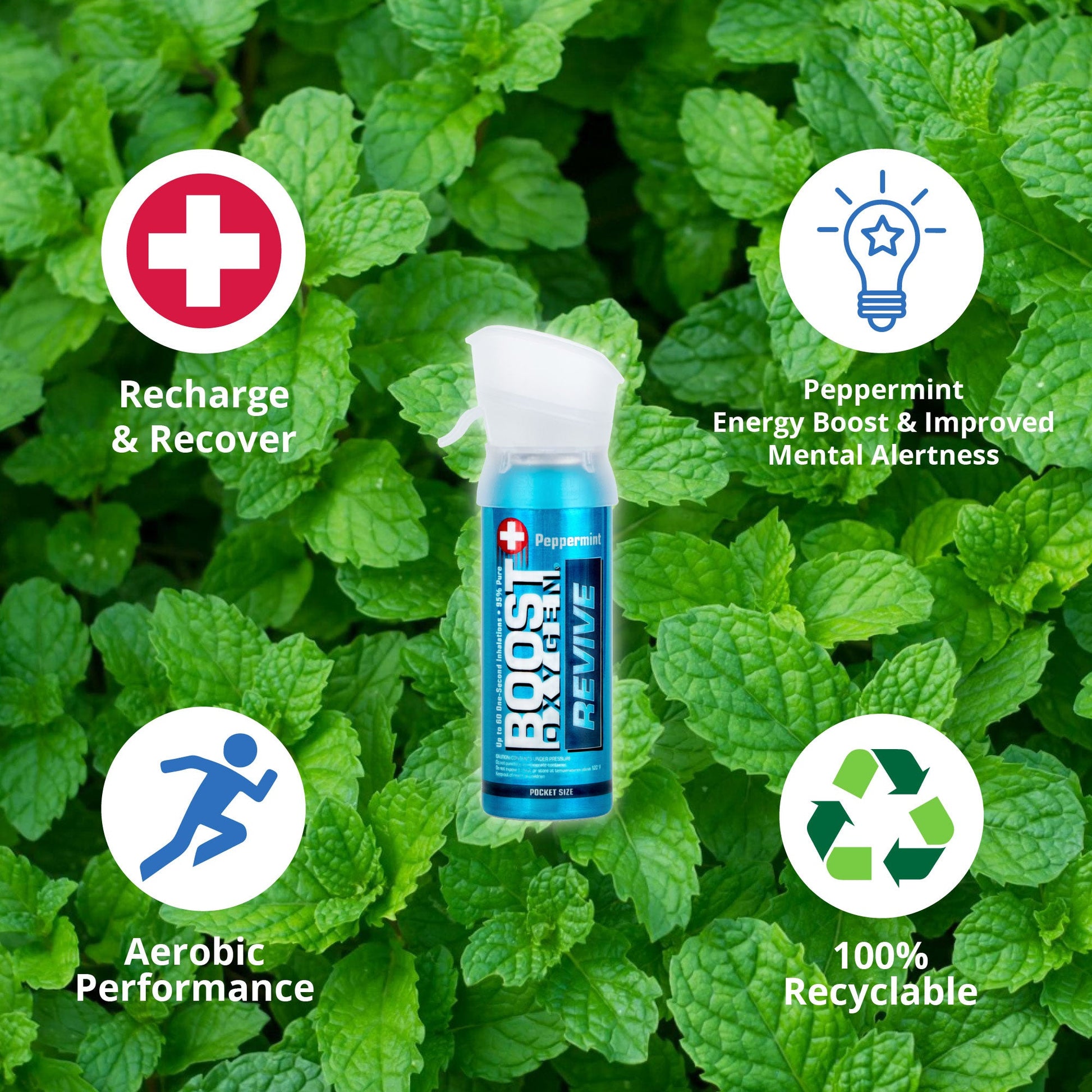 - Boost Oxygen REVIVE is 95% pure oxygen infused with Peppermint aroma