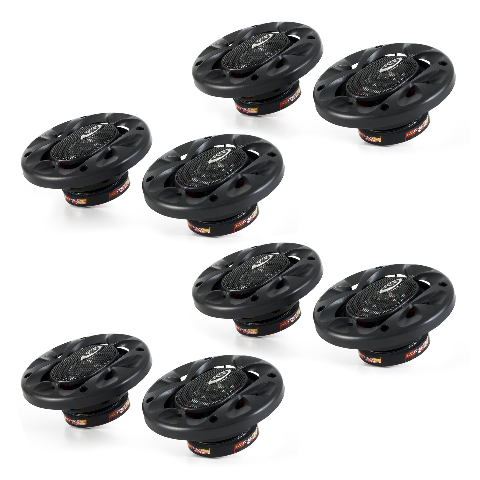 The 4-Pack Boss CH4220 speakers each deliver 200 watts at max power, providing deep bass and loud crisp sound without any distortion. Each speaker features a red poly injected, 1-inch cone, with foam surrounding and a 1 inch, High-Temperature, Aluminum Voice coil. They each have 100 watts RMS power for loud clear audio, plus they have a mounting depth just over 1 1/2 inches.