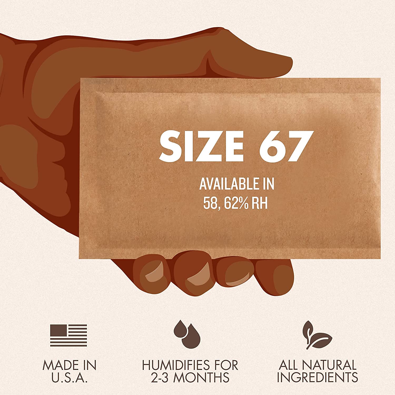 With a precise 62% relative humidity level, this 2-way moisture control packet was designed specifically to protect potency and flavor of herbal products. It maintains a moisture level by absorbing excess wetness and releasing water droplets in super dry environments to prevent staleness. You'll find the most success with the 62% RH packets when you have stickier herbs or you live in a drier climate with a higher altitude.