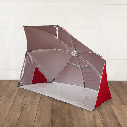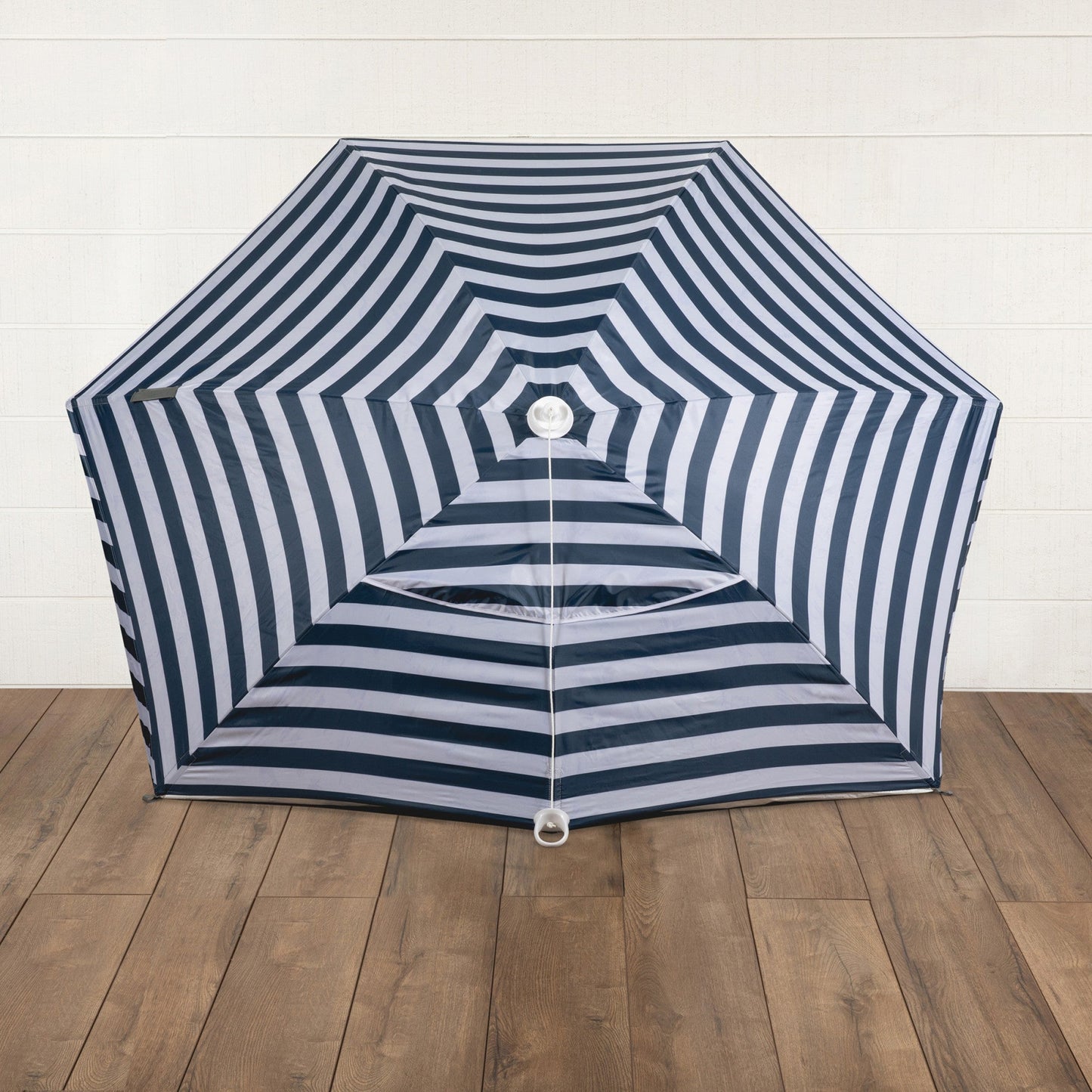 Our Picnic Time scientists have finally spliced the beach umbrella and pop up tent! Behold - the Brolly Beach Umbrella Tent. Does it provide an outdoor pop up sun shelter paradise with just the pull of a string? Absolutely! Is set up a breeze thanks to this sports tent’s easy expanding design? You better believe it. And thankfully, the tie down stakes ensure your paradise won’t be floating away on said breeze. With four spacious interior pockets for necessities - snacks and sunscreen, anyone? - and plenty of legroom, this pop-up beach tent is your picnic-ready home away from home at the beach, at the park, or any place you need some extra shade at a moment’s notice.