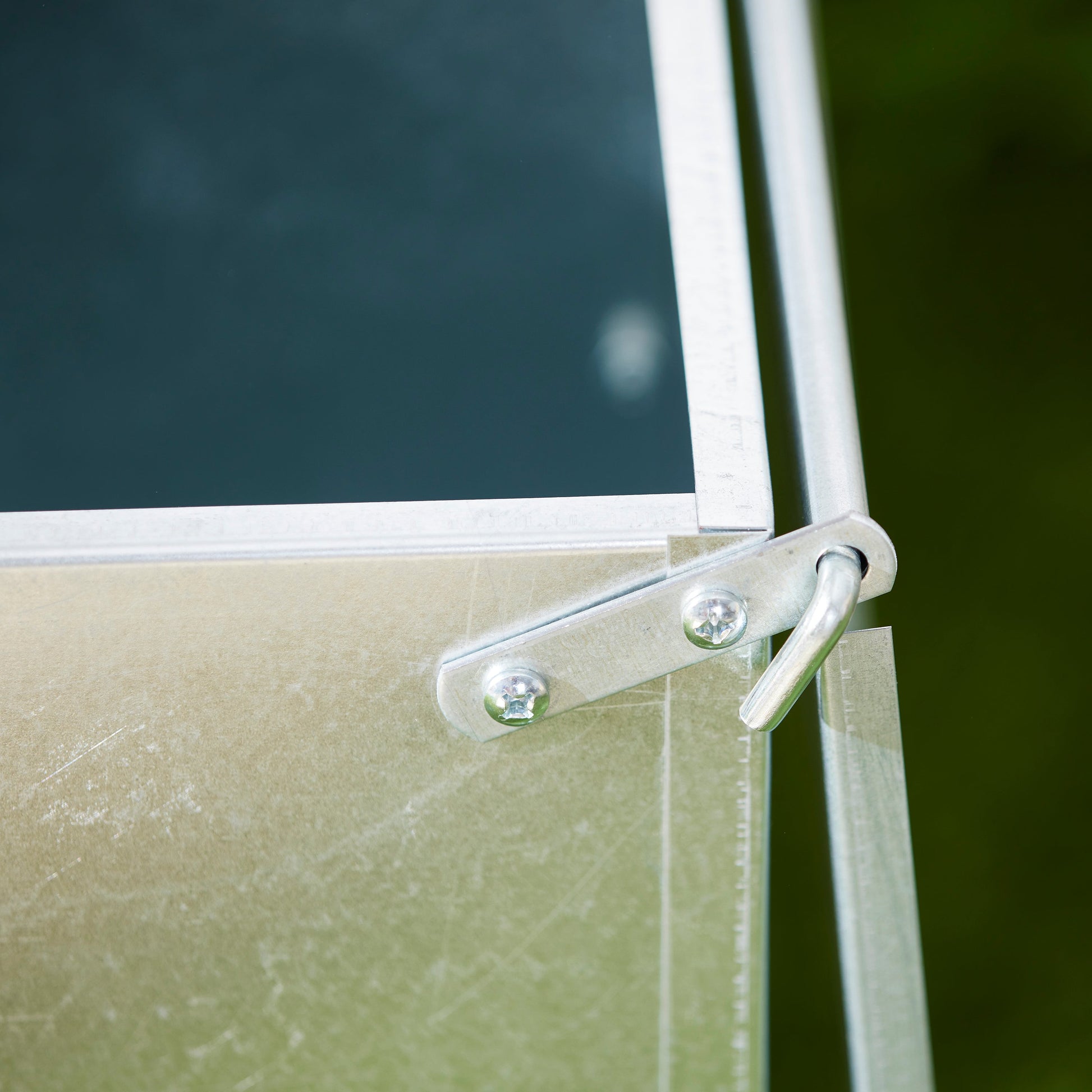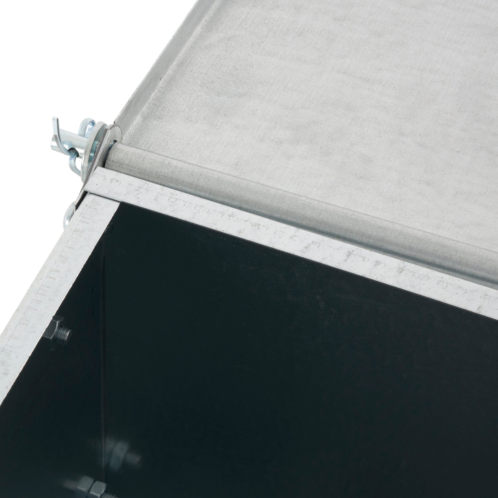 Constructed to keep feed out of the elements and pest-free, the heavy galvanized steel feeder holds up to 1.5 bushels or just over 50 pounds of feed. The single door feeder serves food for up to 4 full-grown hogs. Adjust the feed gate to perfect height for your pigs and reduce spills with the 1-inch feed-saver lip. Don't want to wrestle through your herd of pigs while refilling the feeder? The easy-access top allows you to stay over the crowd and refill from your truck or tractor easily.