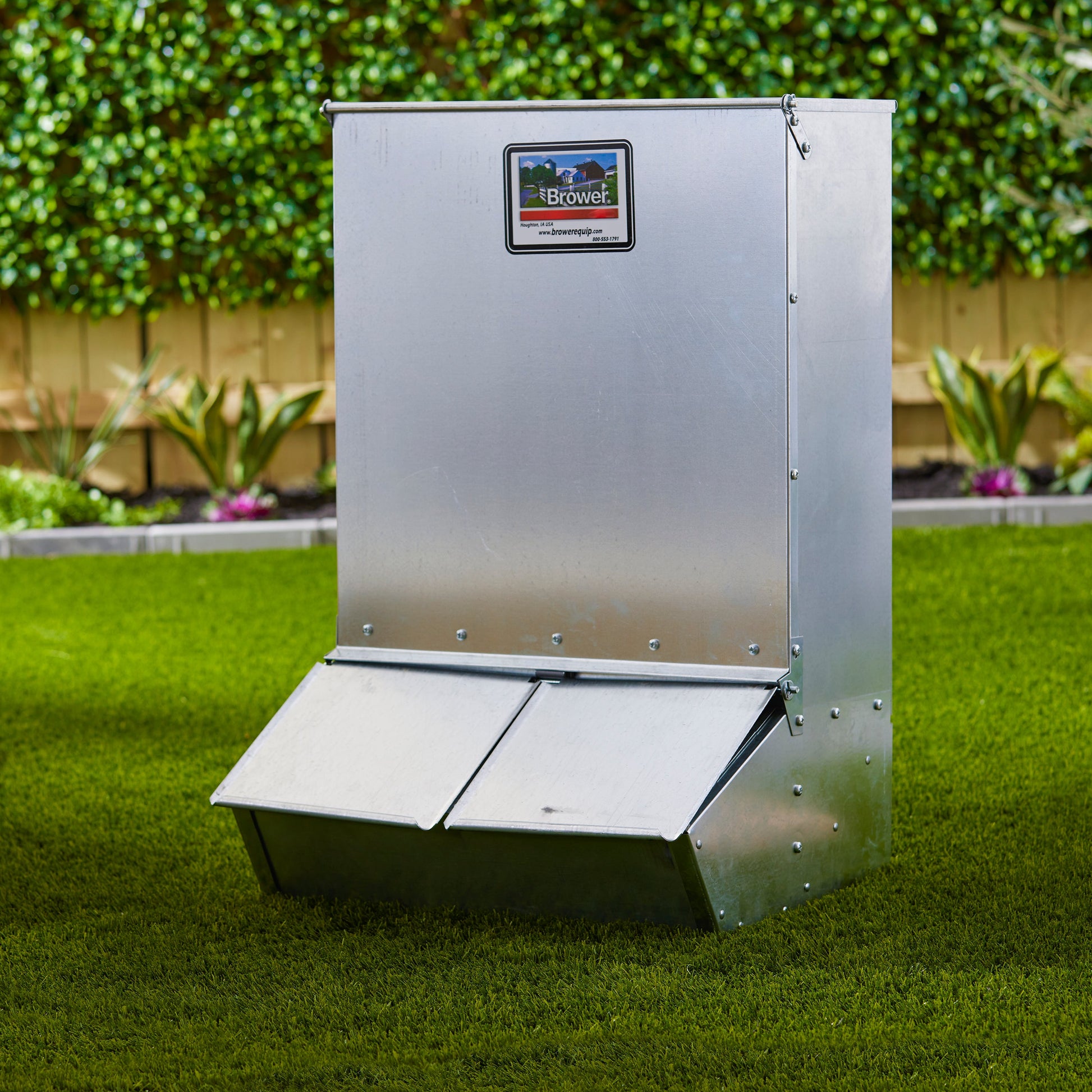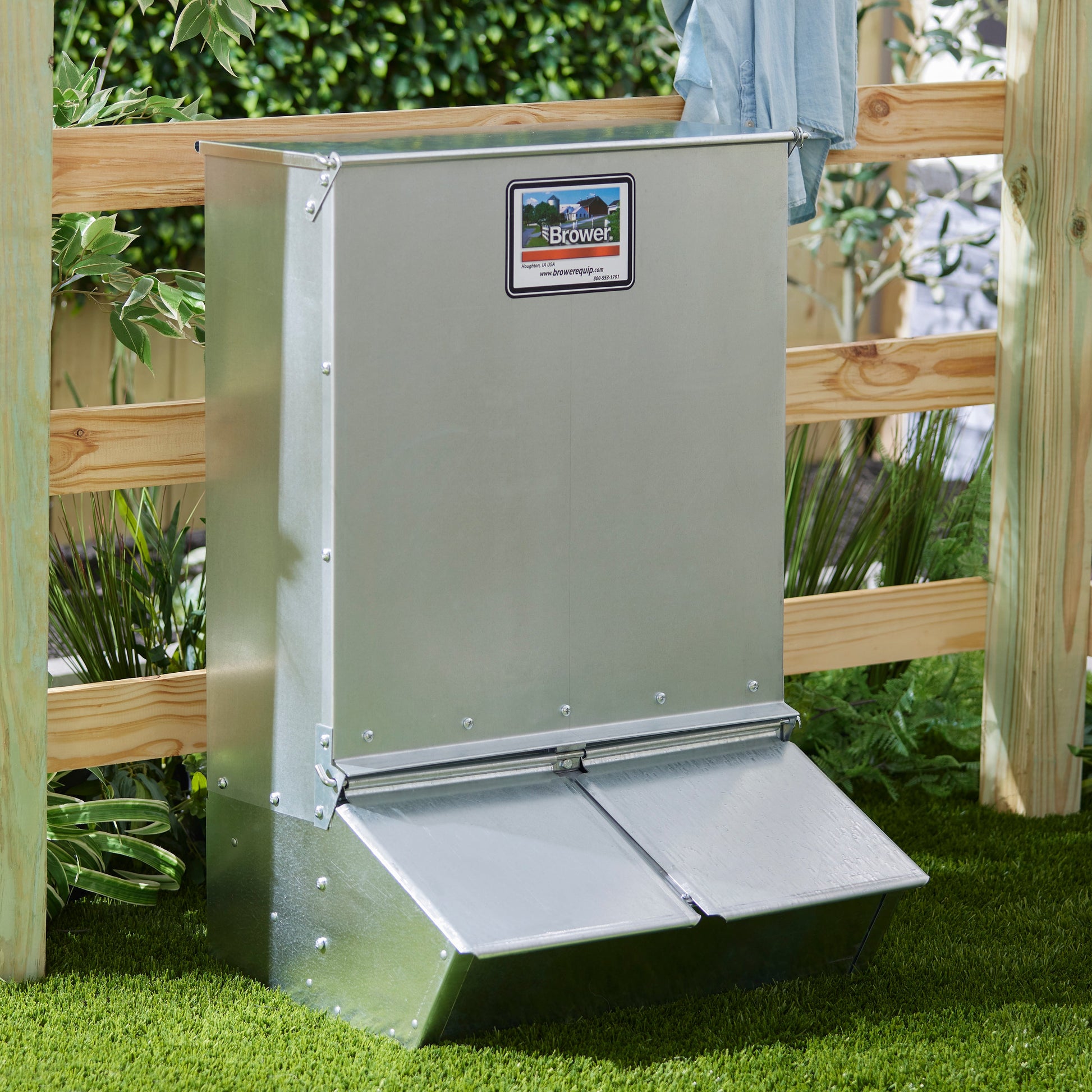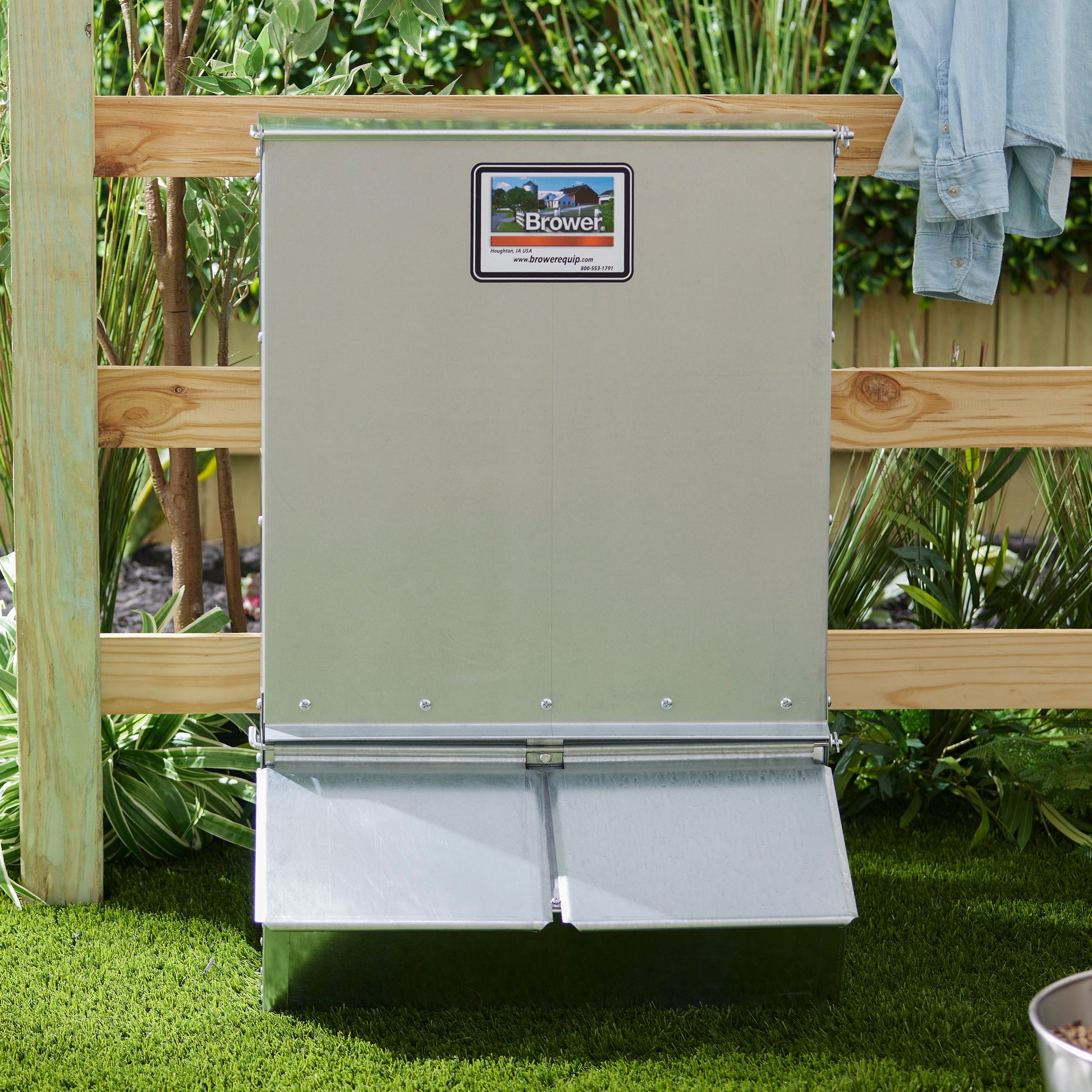 The feeder is great for keeping your livestock well-fed and taken care of through all seasons. Simplify your farm chores and fatten up your hogs with Brower 2 Door Hog Supplement Feeder.