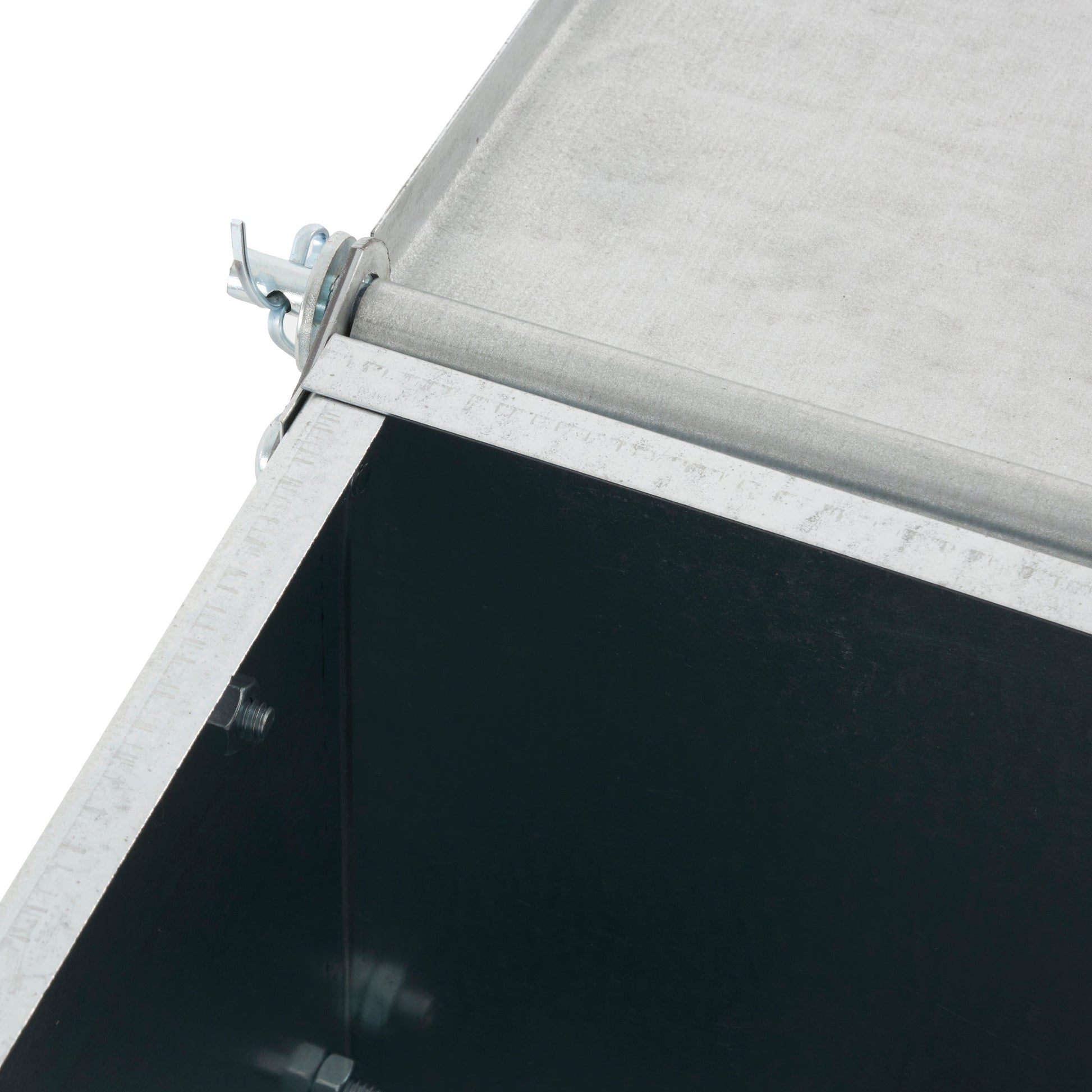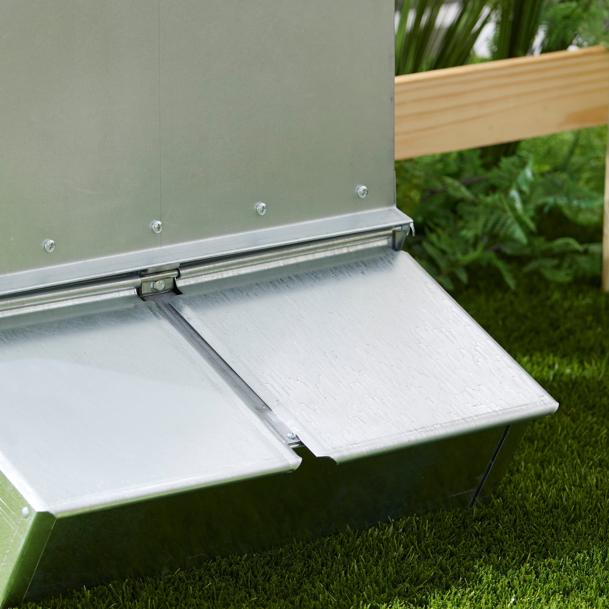 Constructed to keep feed out of the elements and pest-free, the heavy galvanized steel feeder holds up to 3.7 bushels of tasty feed. The 2-door feeder serves food for up to 8 full-grown hogs and pigs. Large, free-acting doors close automatically, wide enough to allow large hogs to eat comfortably. Each side has a feed slide that adjusts from the outside, and swing-type hinges allow cover to drop down flush with the feeder's sides. Don't want to wrestle through your herd of pigs while refilling the feeder? The top lid allows you to stay over the crowd and refill from your truck or tractor. Durable 20-gauge steel construction withstands even severe weather, perfect for use even in heartland thunderstorms.