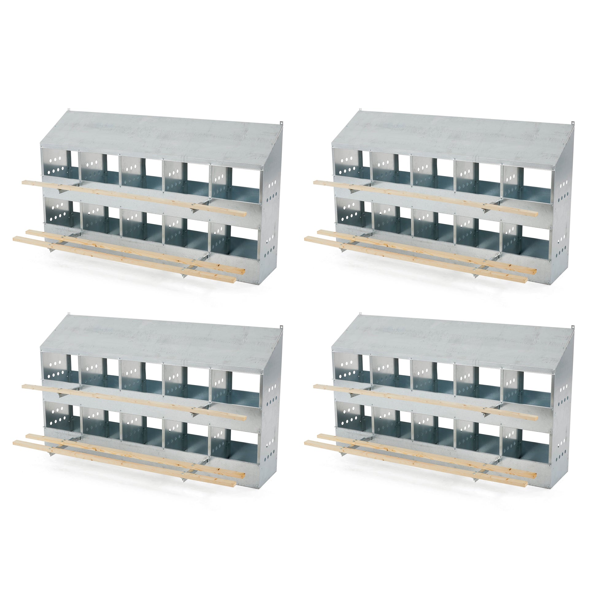 Treat your hens to a happy home while during their egg-laying period with the 4-Pack Brower Galvanized Steel 10 Hole 60 Bird Poultry Nest Chicken Brooding Box.