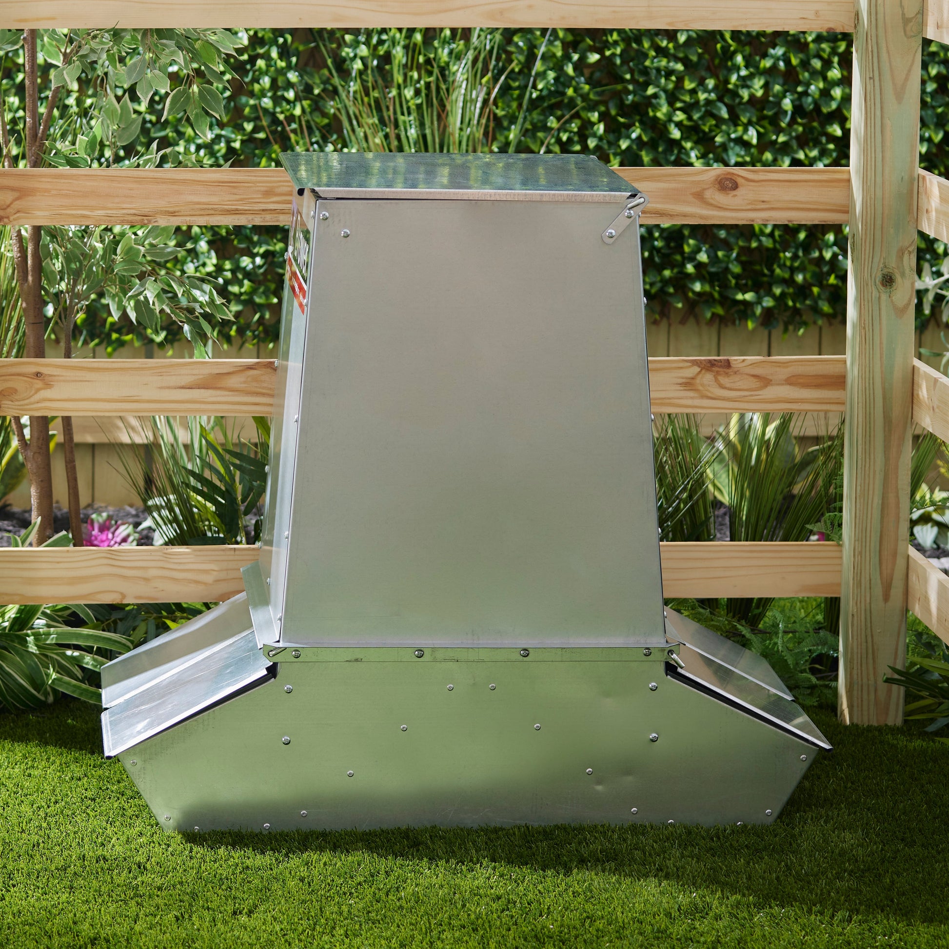 - Constructed to keep feed dry and pest-free with heavy 16-gauge galvanized steel