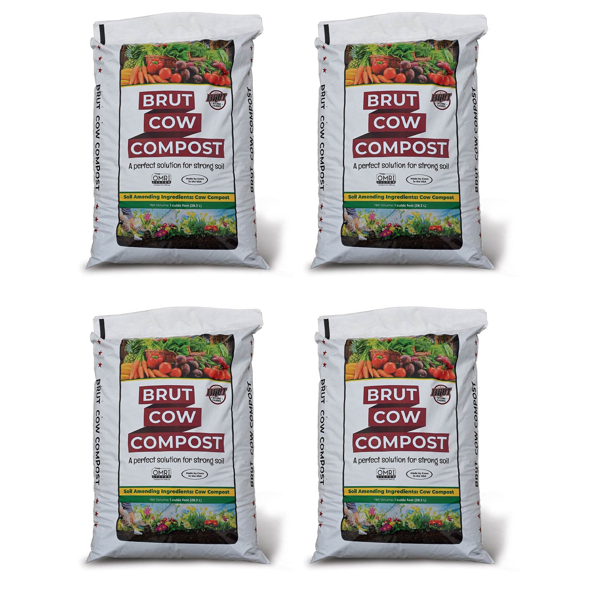 Brut Organic 1 Cu Ft Pure Nutrient Rich Garden Enhancer Cow Compost, (4 Pack)
