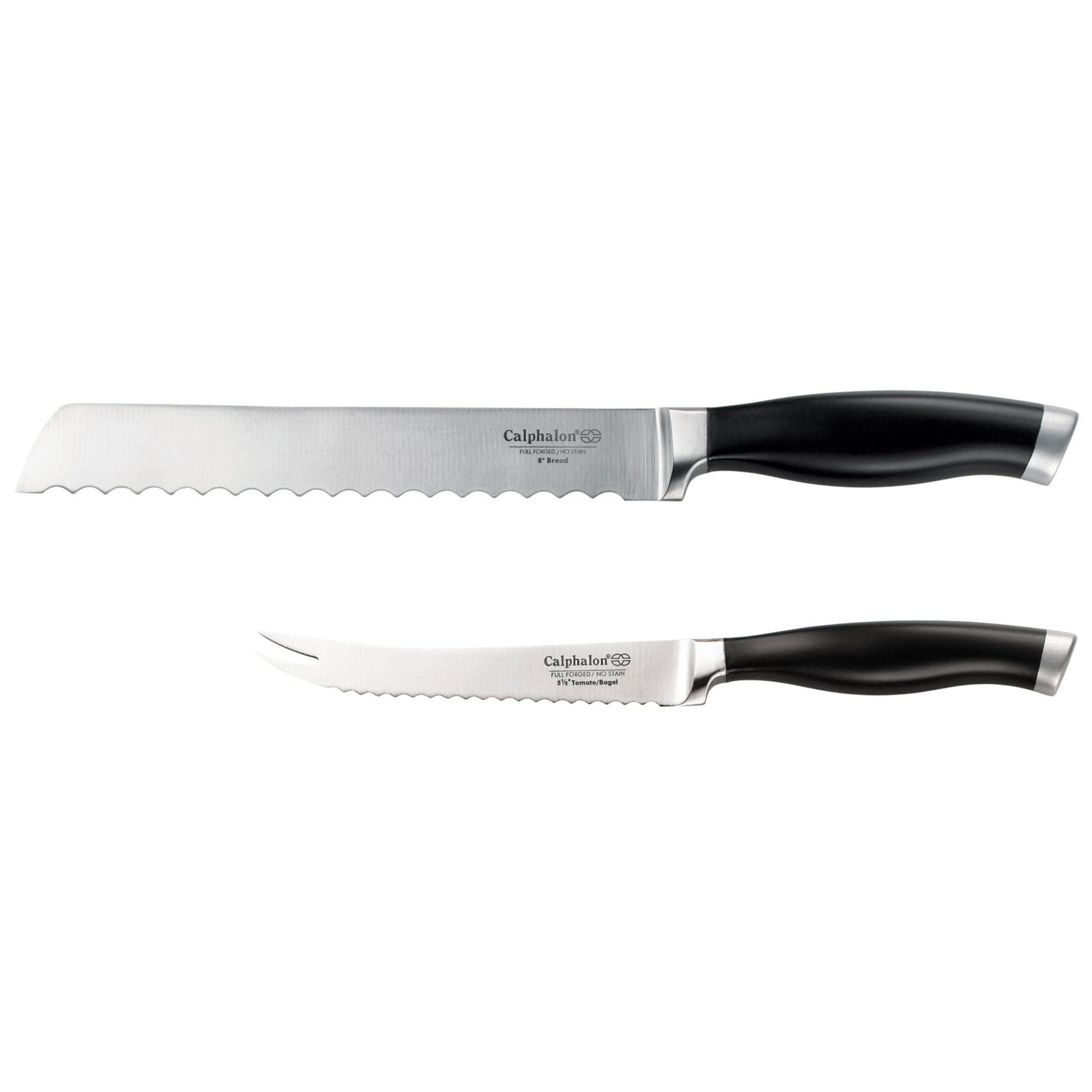 Looking to add some new cutlery accessories to your kitchen? The Calphalon 20 Piece Cutlery Set is the perfect set to assist your cutlery needs. The long-lasting set has a paring knife, boning knife, santokus, bagel knife, fork, utility knife, slicer, chef knife, bread knife, shears, 8 steak lives, and sharpening life block.