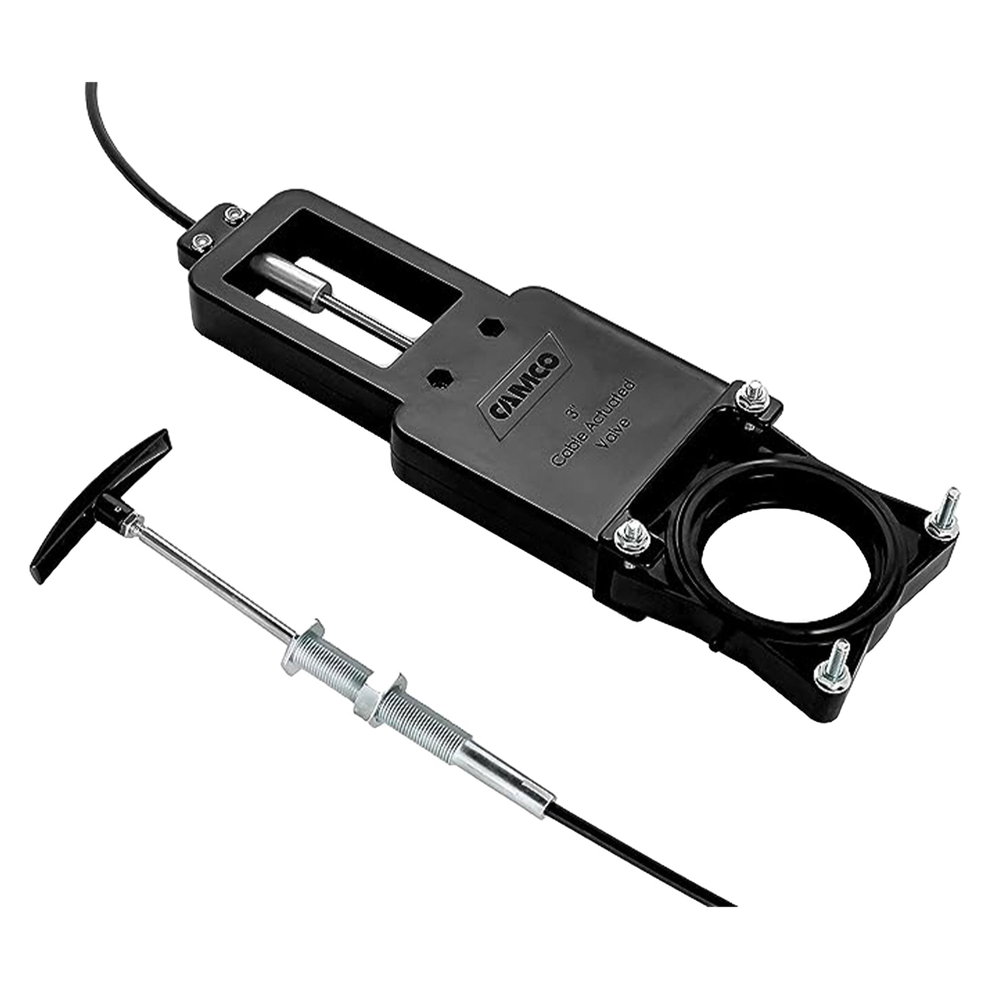 Camco 3" RV Waste Valve w/72" Cable Extension Kit, Sidewall/Compartment Mount