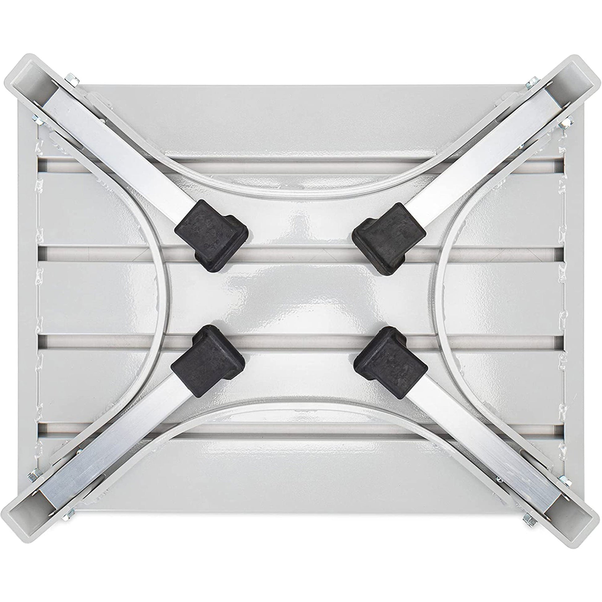 When it's time to store or transport the step stool, fold the legs even future to measure 3 inches in height. Built with strong aluminum construction, this step stool is made to last and can support up to 1,000 pounds, making it suitable for various tasks and users.