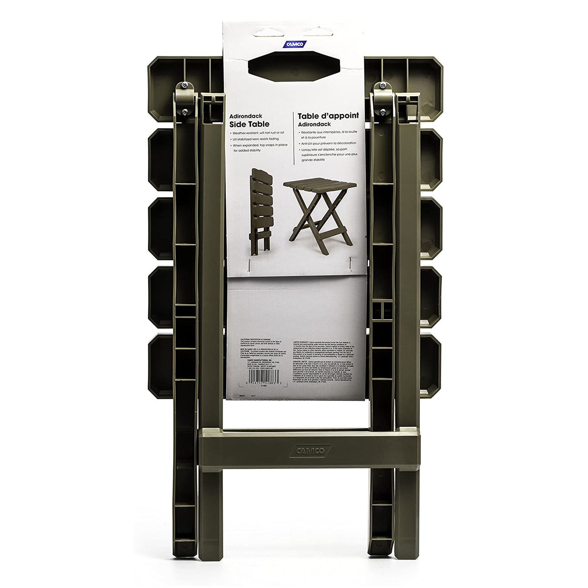 With durable tables by your side, you're ready to work, play, or eat outdoors. These Camco Adirondack Plastic Folding Side Tables are your ideal companion for trips to the beach, pool, campsite, or out tailgating and picnicking. You can even set up the outdoor table in your backyard or on your patio as another surface at your next cookout.