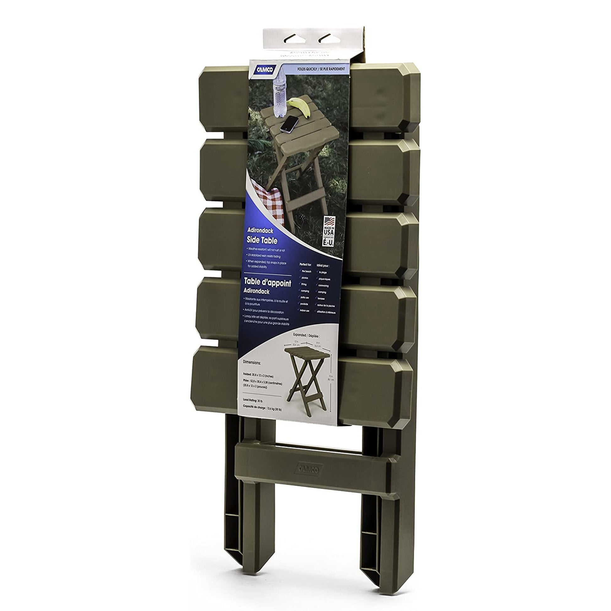 Make sure there's enough table space, whether you're in your backyard or on the road, with the Camco Adirondack Outdoor Folding Side Table.