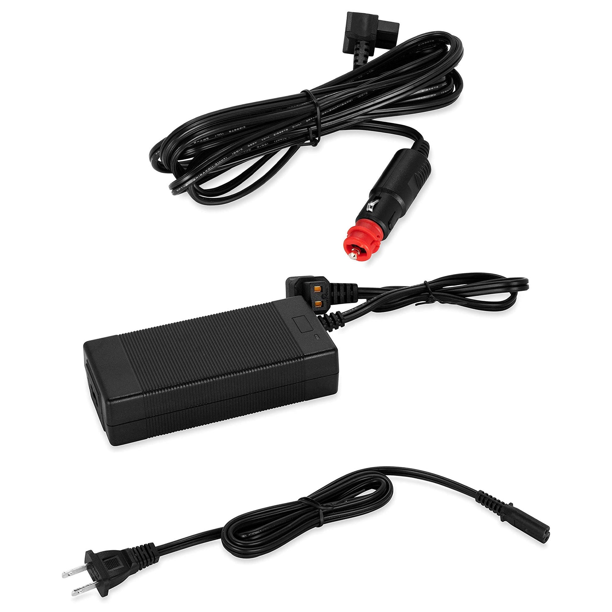 - Includes: (1) 7-foot A/C adapter and (1) 11-foot 12/24V cigarette lighter plug adapter