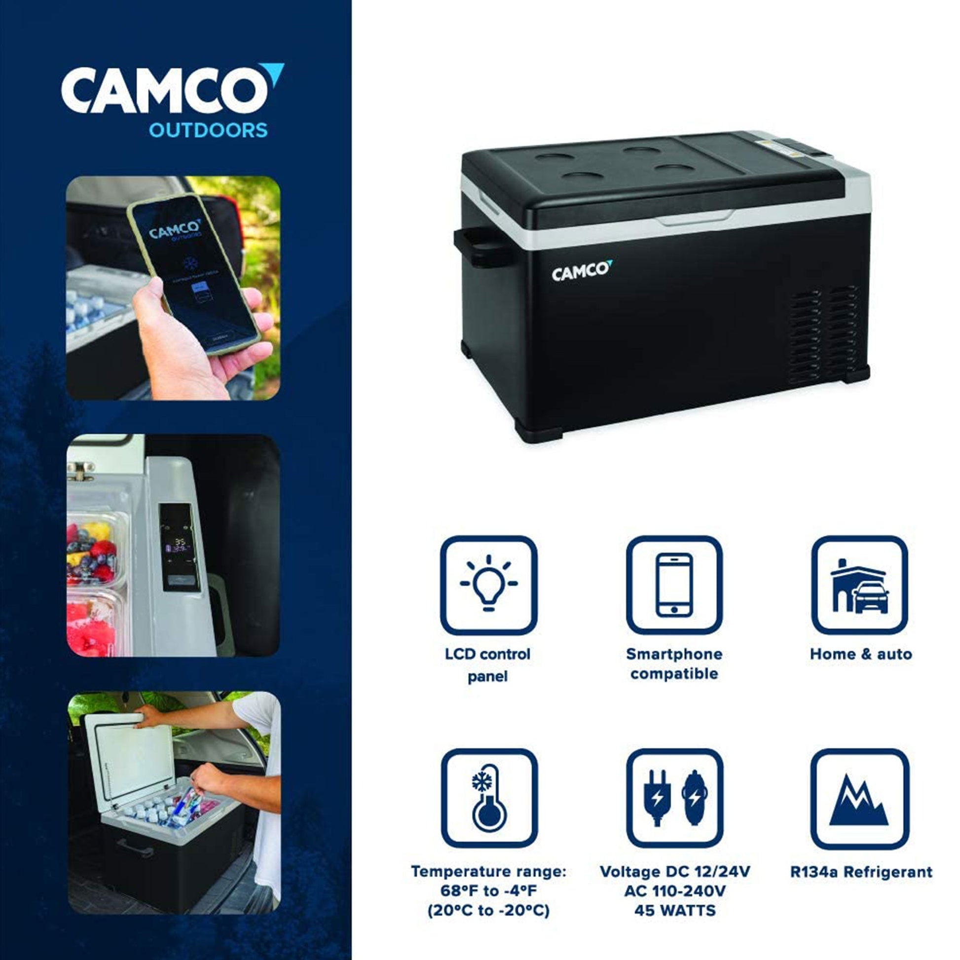 Camco CAM-300 30L Compact Portable Refrigerator/Freezer with LCD Control Panel