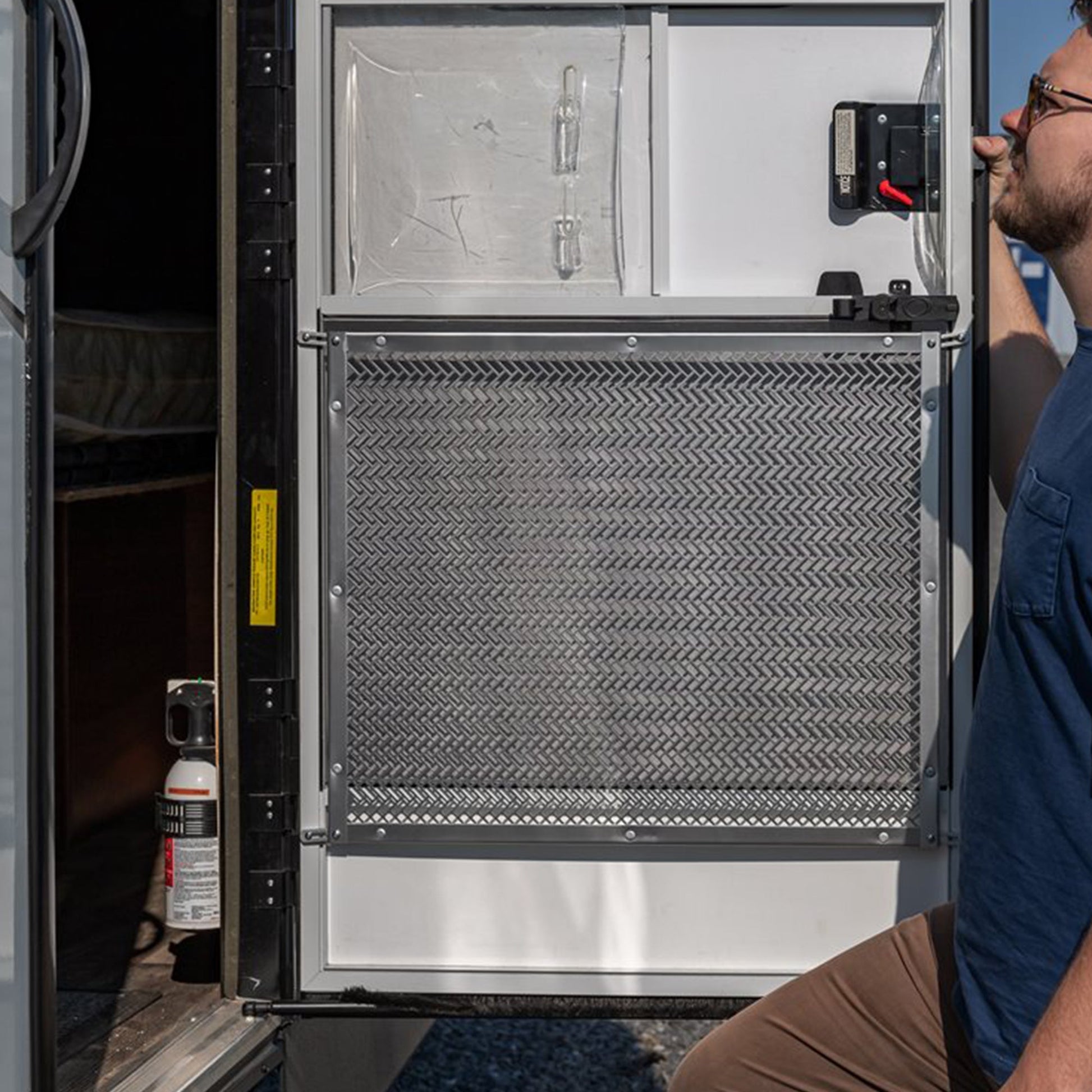 Not only does this grille helps keep children and pets from pushing through the screen and provide a barrier to restrain unwanted damage, but it also adds a nice design touch to your motor home's entrance. The herringbone design of the grille complements any exterior, making it the perfect addition to any decor style. Installation is a breeze with the included hardware, and the grille can be adjusted from 20 to 29 inches to fit a range of screen door sizes.