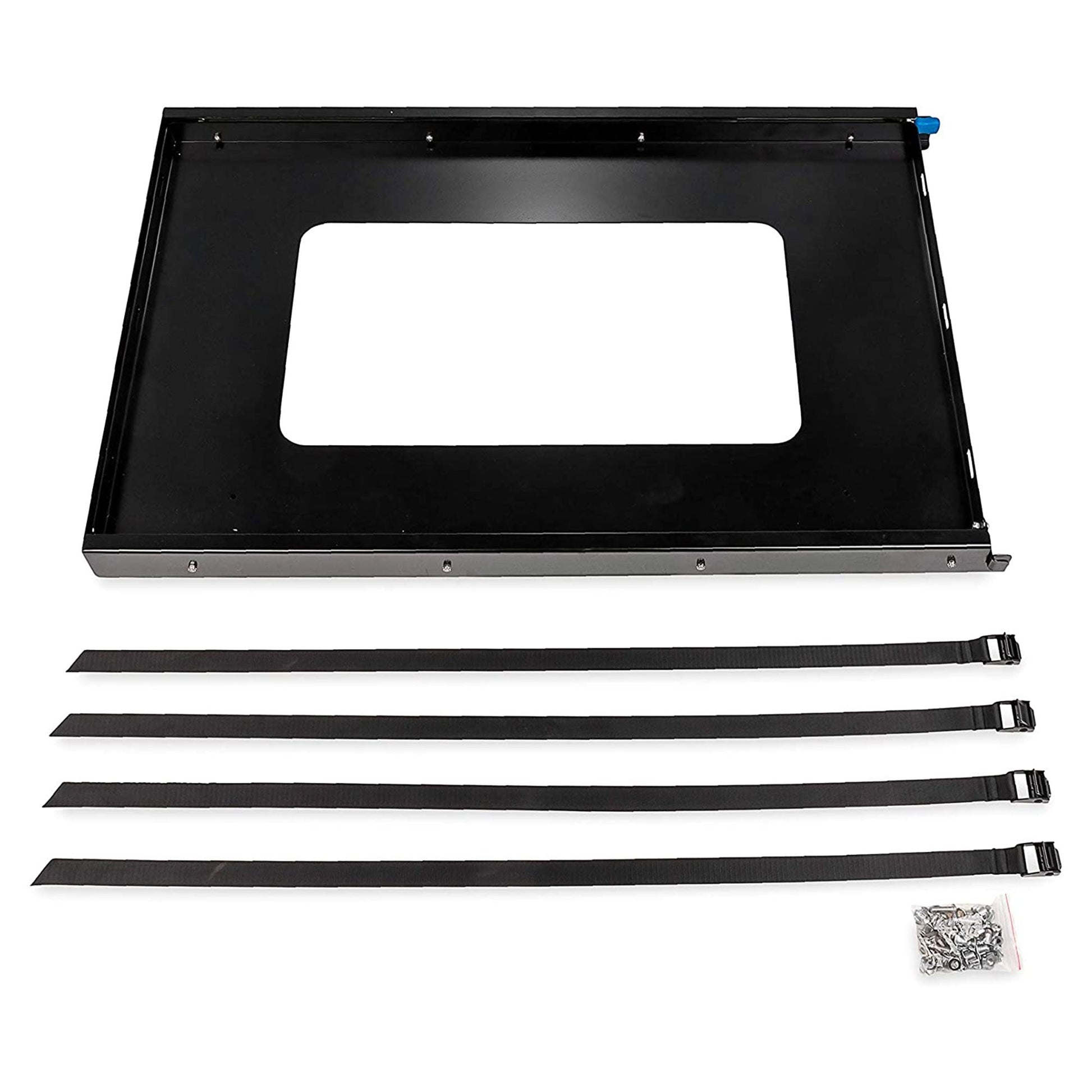 Smooth sliding ball bearings provide ease of use while the safety latch locks the bearings in place when in motion. Whether placed in the trunk, the middle of your car floor, or on the passenger side door, this large sliding system makes it easier for anyone in the car to get refreshments. This durable steel sliding system includes all mounting hardware and (4) tie-down straps.