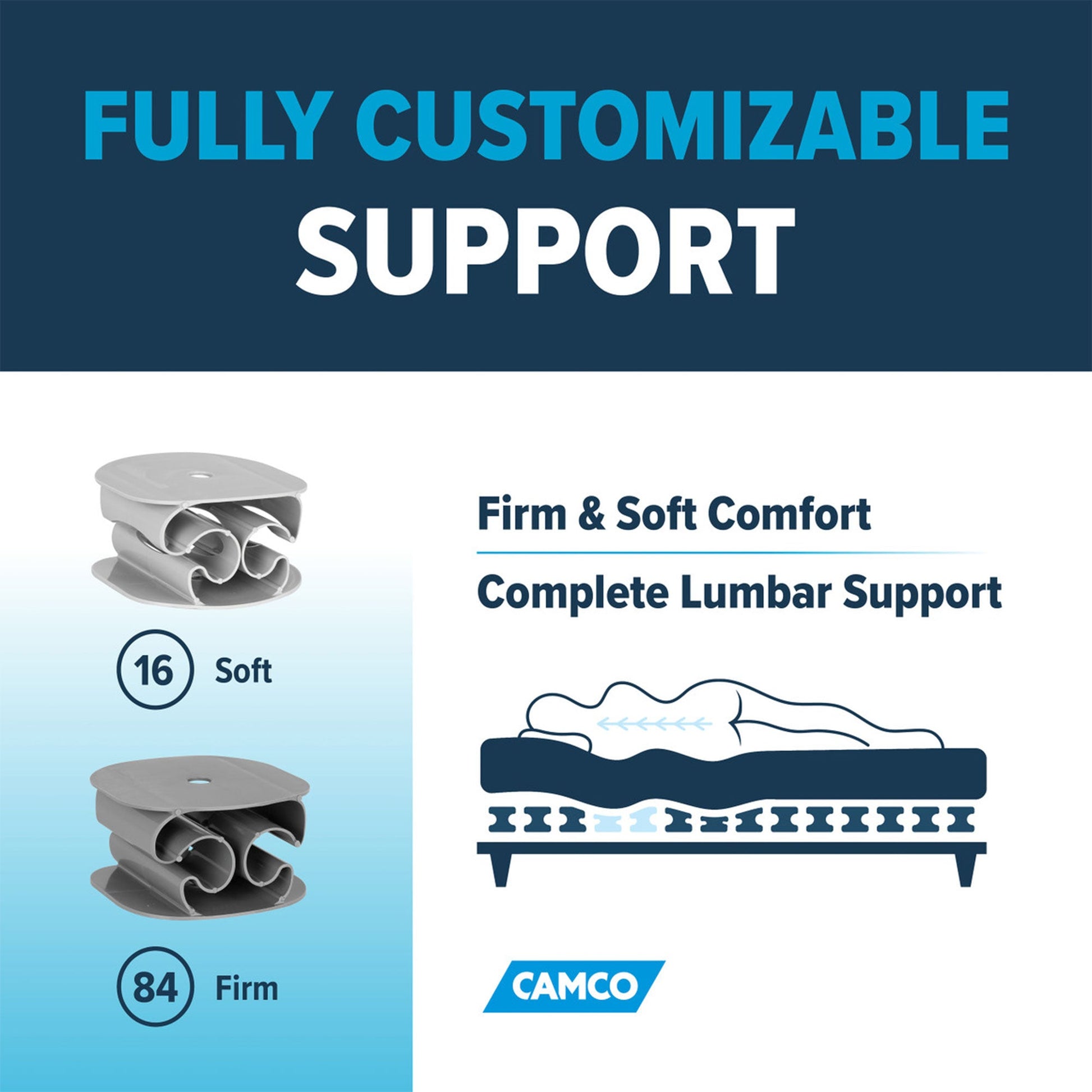 - Transform your RV or boat mattress with the Camco Bed Spring Kit, providing increased lumbar support and making your sleeping surface significantly more comfortable for a restful night's sleep