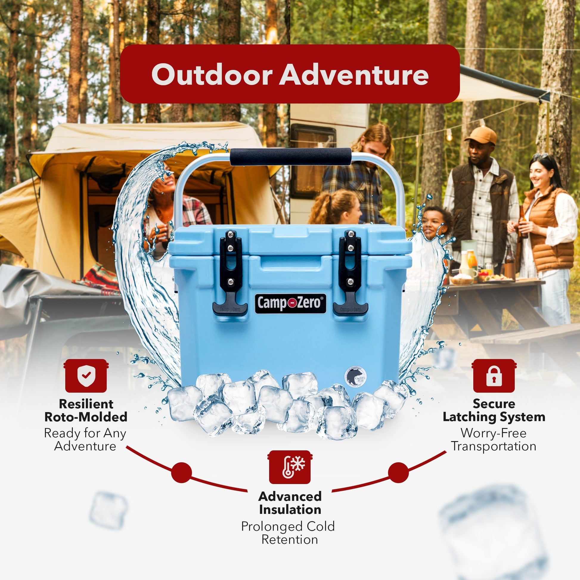 CAMP-ZERO 10 Liter 10.6 Quart Lidded Cooler with 2 Molded In Cup Holders, Sky