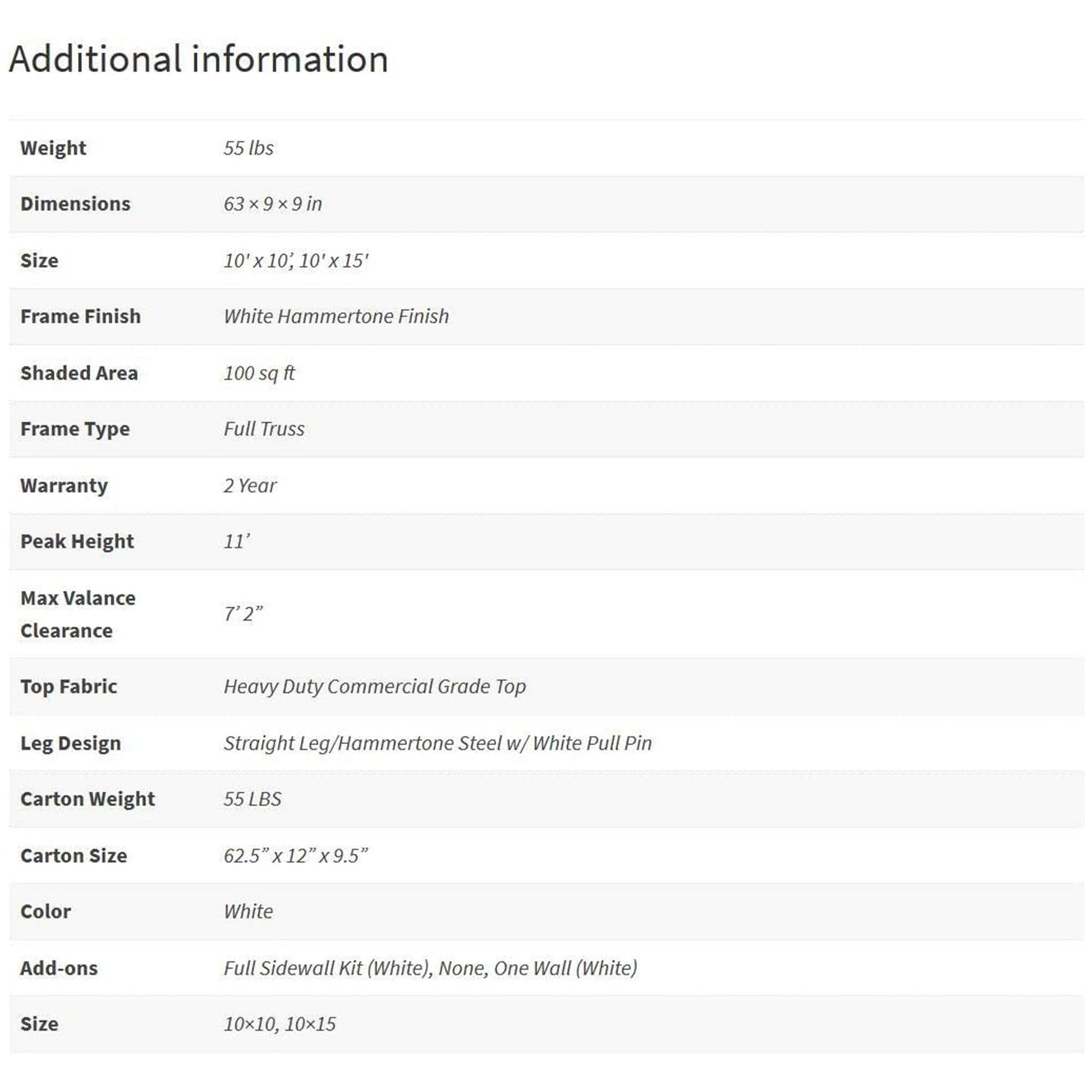 Caravan Canopy TitanShade 10 x 10 Steel Frame Portable Instant Canopy Kit, White