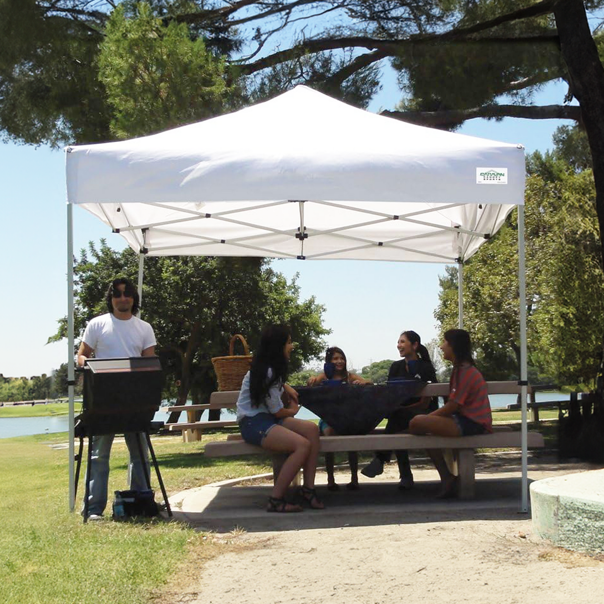This portable canopy sets up easy and provdies 100 square feet of shade and protection from the elements. It features a light, yet sturdy steel construction and has a heavy-duty polyester top.