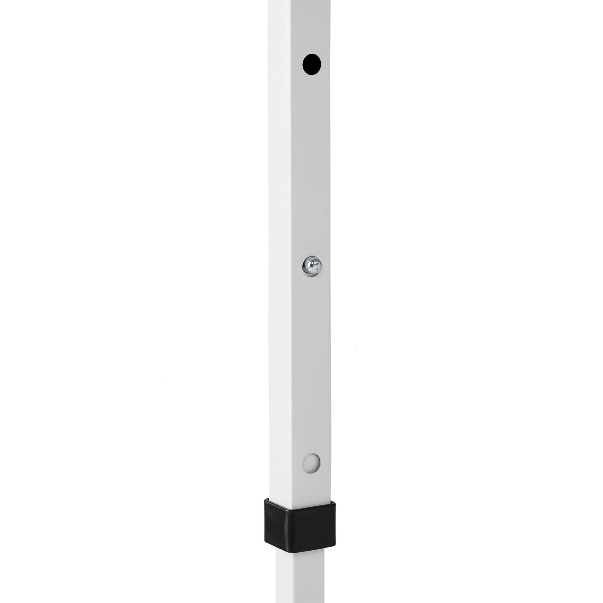 - Fully assembled slant leg pop up canopy with cathedral style, white powder coated steel frame for maximum head room
