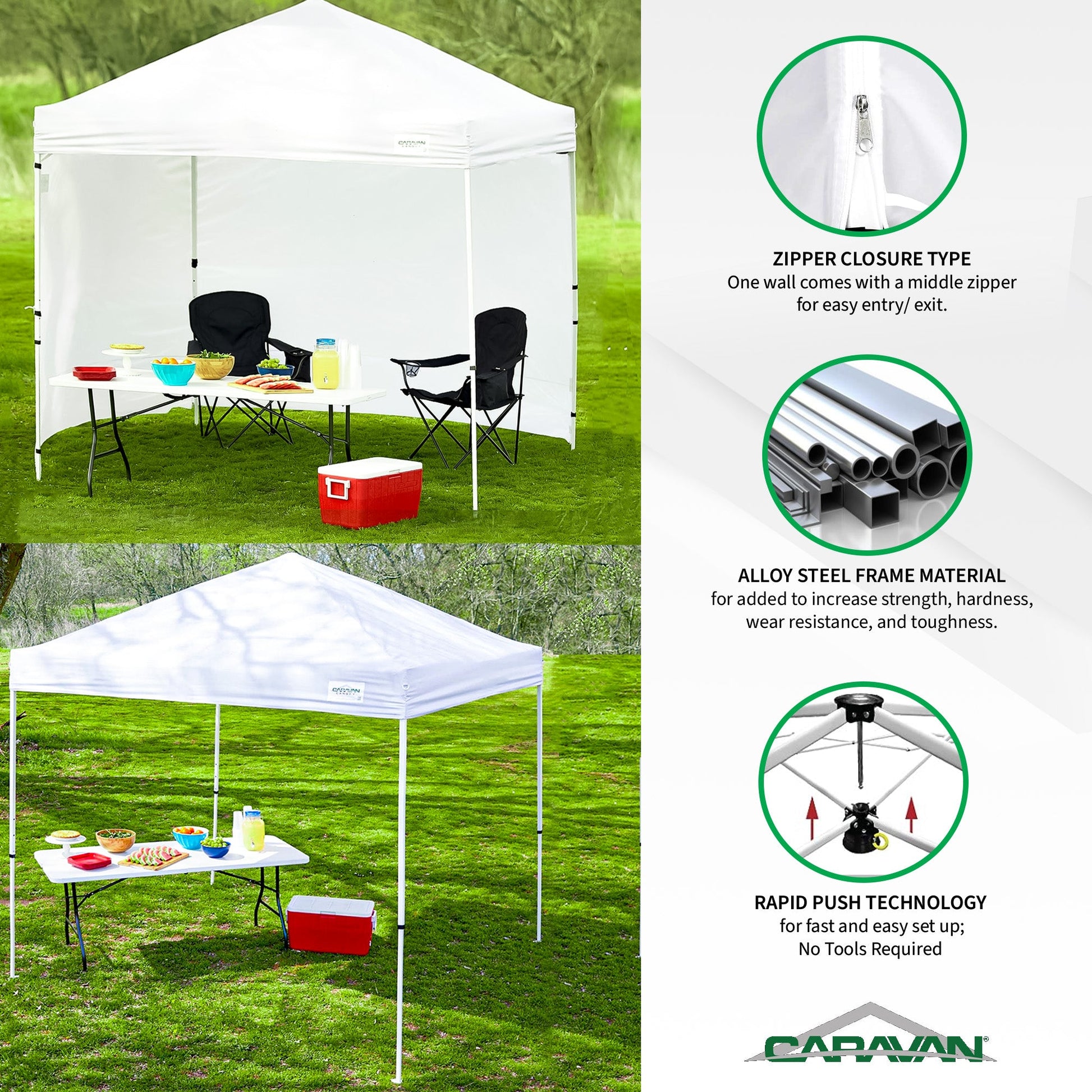 Experience the ideal blend of style and utility, and don't be afraid of the weather or pesky parts with the Caravan Canopy V-Series 2 Straight Leg Sidewall Kit with Straight Leg Pop Up Tent.