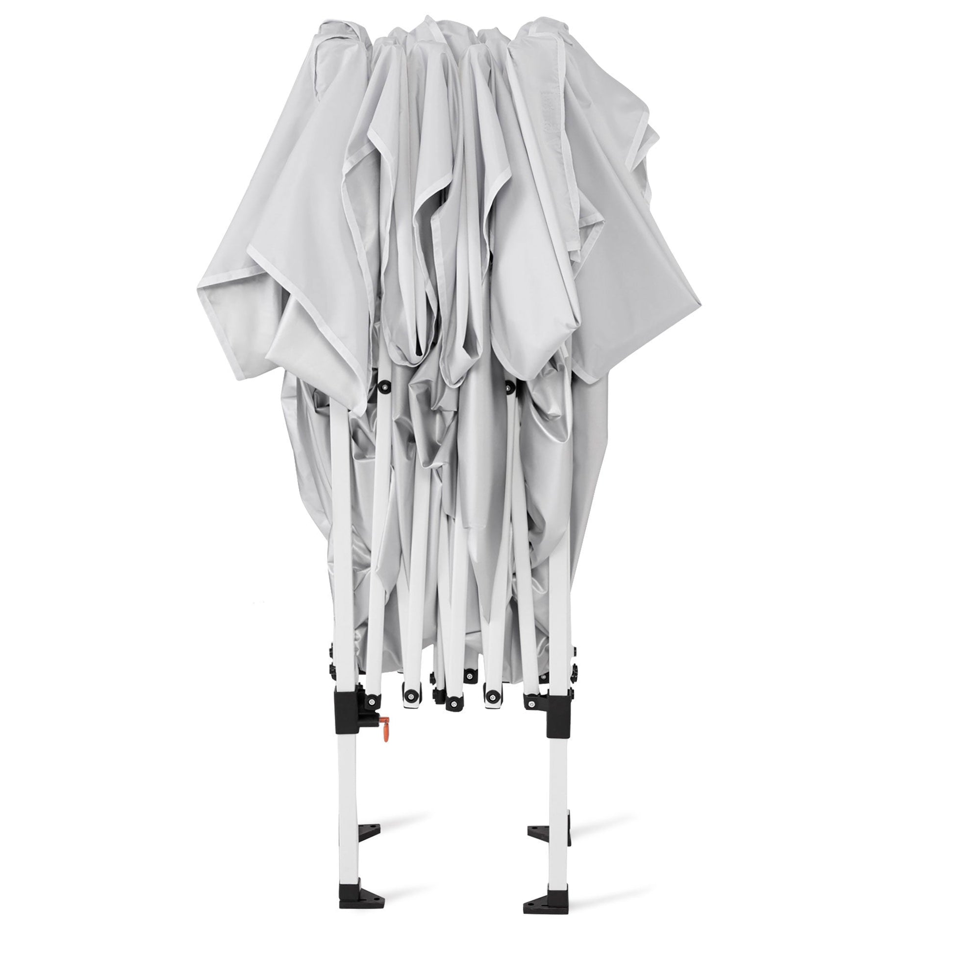 Upgrade your outdoor space with this stylish, functional shade ten that offers ample shade to enhance outdoor gatherings. The tent is easy to assemble with pull-pin sliders and a rising trust system, ensuring a quick setup without the risk of pinching your fingers. It offers a peak height of 10 feet 5 inches and adjustable height settings to accommodate various needs. The tent's durability is enhanced by oversized footings and included stakes for stability. Additionally, it can be conveniently stored and transported in the included roller bag.