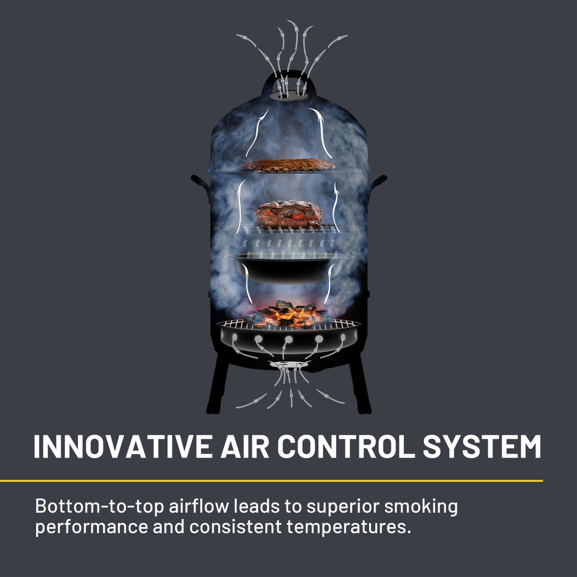 - Innovative air control system to take control of your food smoking experience and fine-tune the temperature to achieve the ideal level of smokiness
