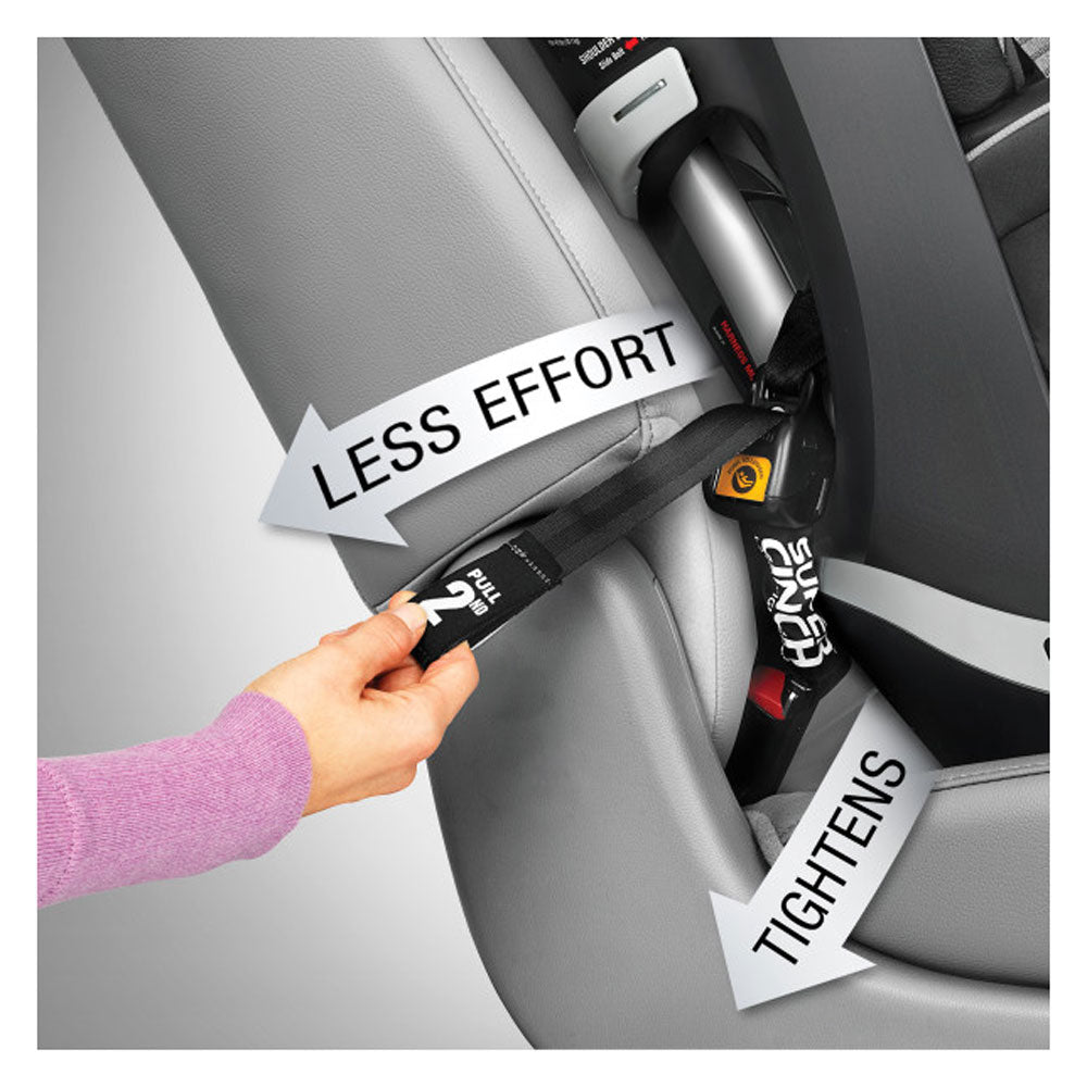 - LockSure lock-offs and wide belt routing for installation with seat belt for high-level safety