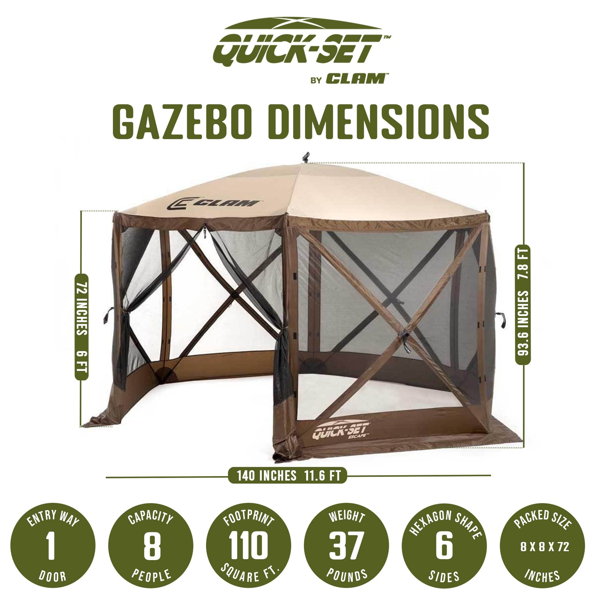 Make good times in the outdoors fun and seamless, be it camping in the woods, hosting a picnic in the park, or tailgating with fellow sports fans, with the Clam Corporation Quick-Set Escape Portable Outdoor Gazebo Canopy Shelter. Say goodbye to sunburns and bug bites when you pop up the Clam Quick Set Escape Portable Outdoor Gazebo Canopy Shelter with 6 Wind Panels.