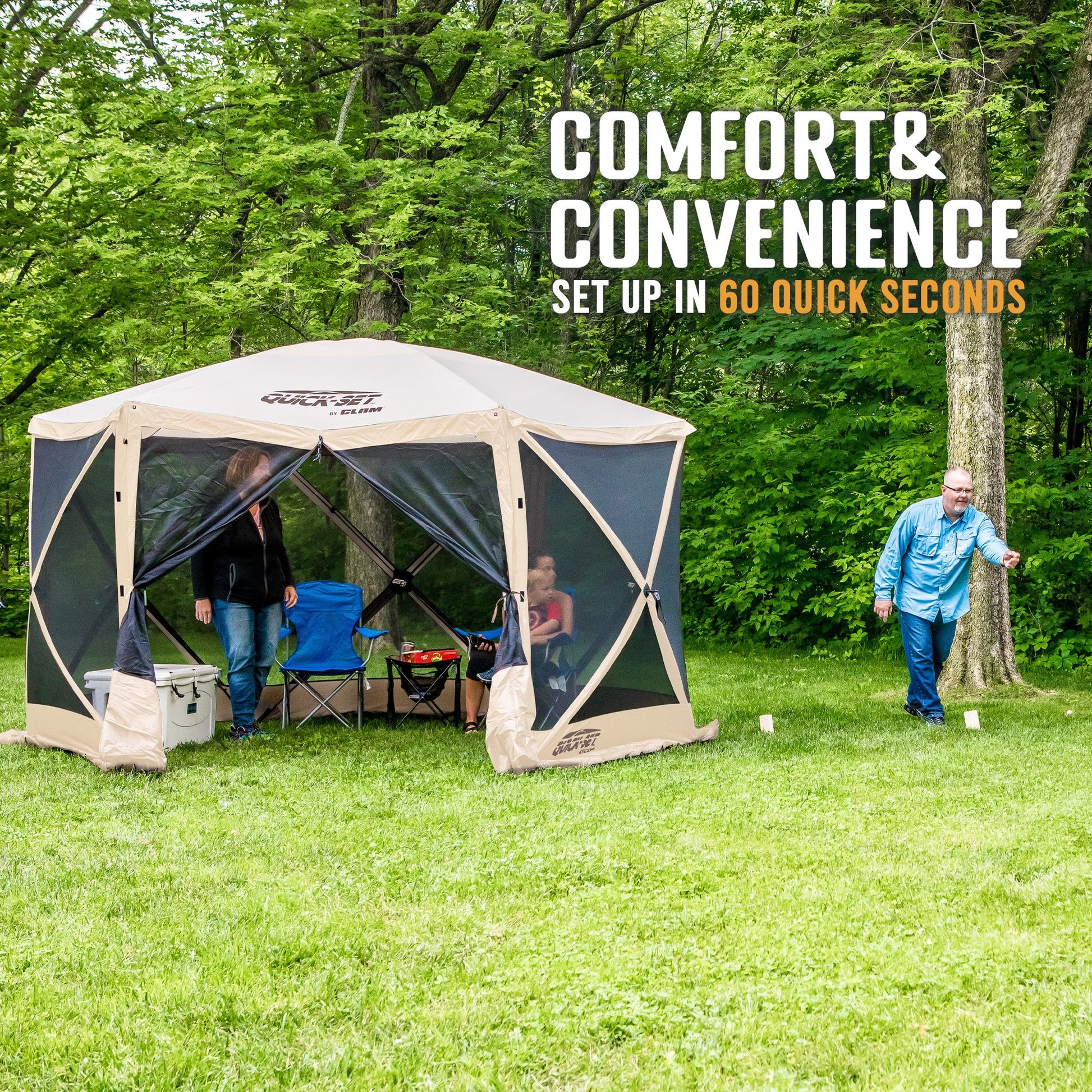 - CLAM Quick-Set Escape 11.5 x 11.5 Foot Portable Outdoor Camping Shelter, Tan