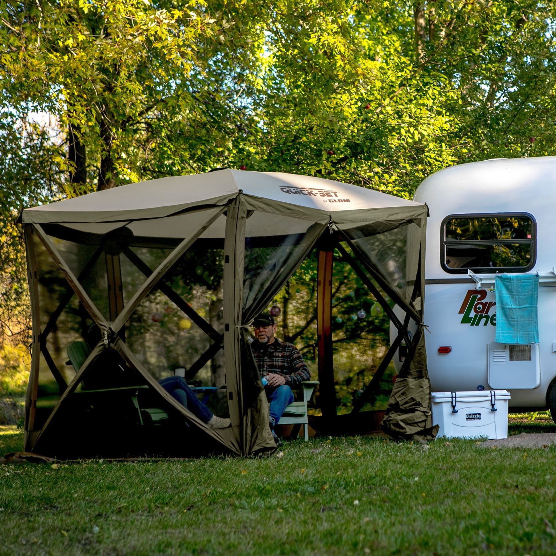 Rain or shine, enjoy the outdoors in your CLAM Quick Set Venture Portable Outdoor Gazebo Canopy Shelter. Never worry about inclement weather or windy days again when camping, tailgating, or doing outdoor activities like picnics.