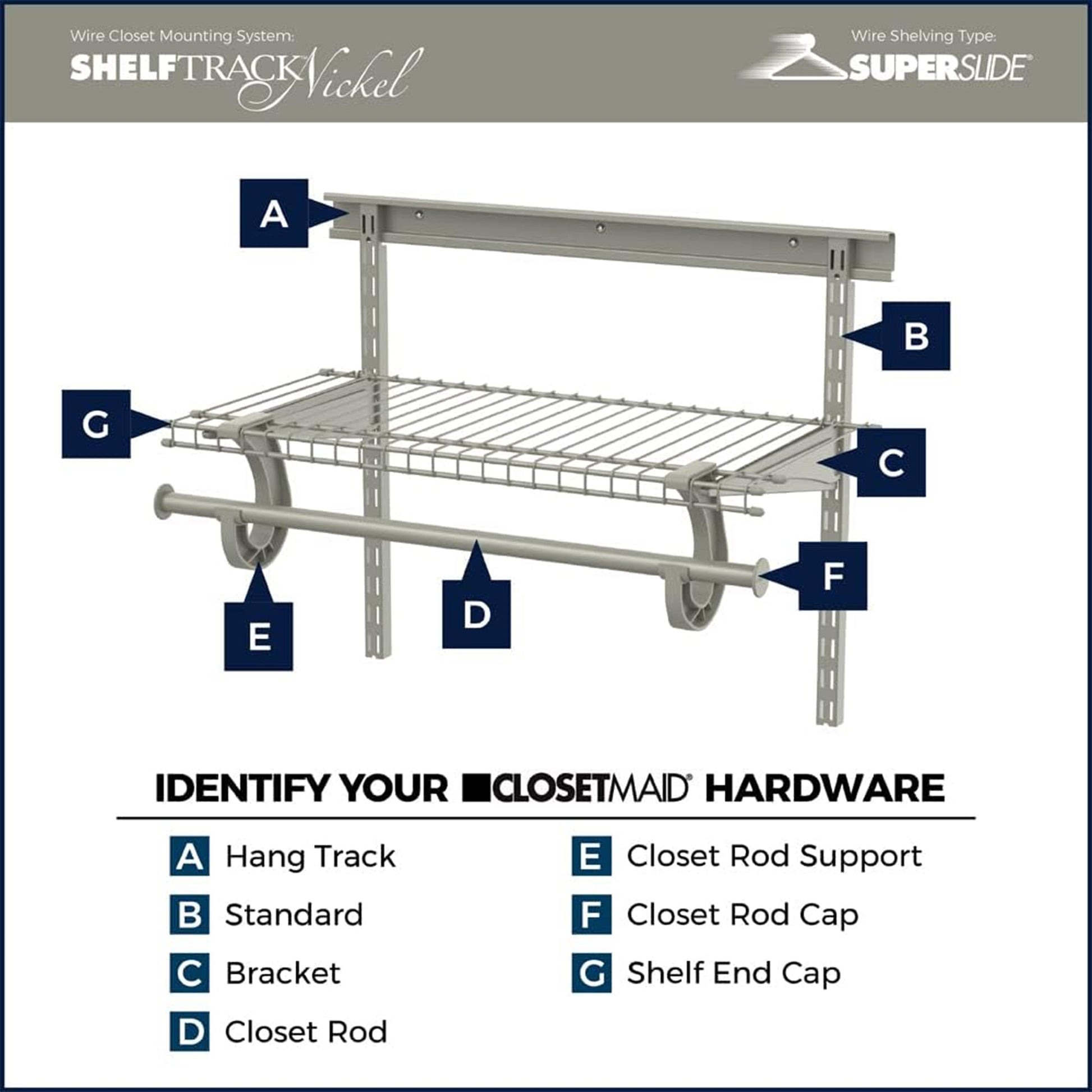 Revolutionize your organizational game with the ClosetMaid ShelfTrack Hang Track Rail, a sleek and versatile solution for transforming your closets, pantries, utility rooms, and even the laundry area. Crafted from durable steel with a stunning nickel epoxy finish, this 80-inch marvel not only enhances your storage but also adds a touch of contemporary elegance.