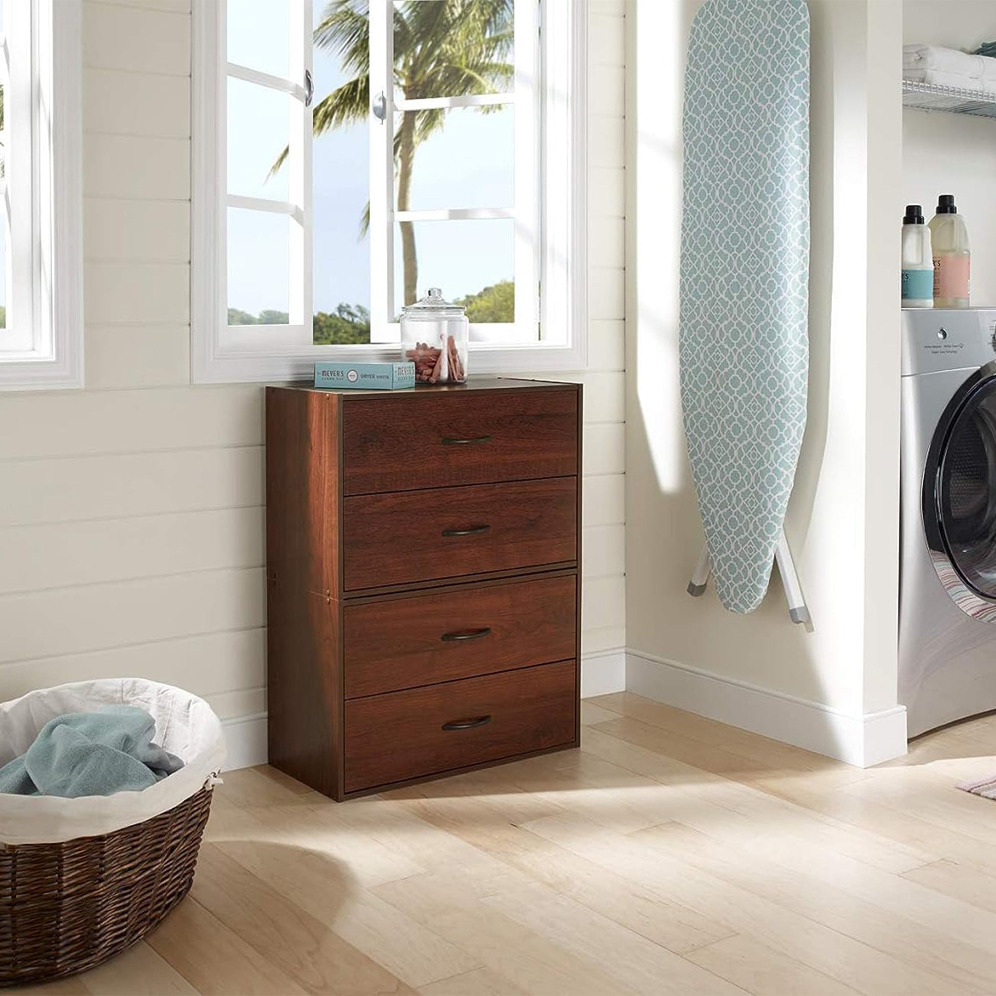 Crafted in a rich dark cherry finish, this storage organizer exudes an elegant aura that complements the decor of any room. The drawers, adorned with graceful handles, effortlessly glide open, revealing spacious interiors to stow away your treasures neatly. With the option to stack it alongside other drawer organizers or place them side by side, you have the freedom to create a customized storage solution tailored to your needs. This versatility ensures that your home remains tidy and inviting, making every space a cozy retreat.