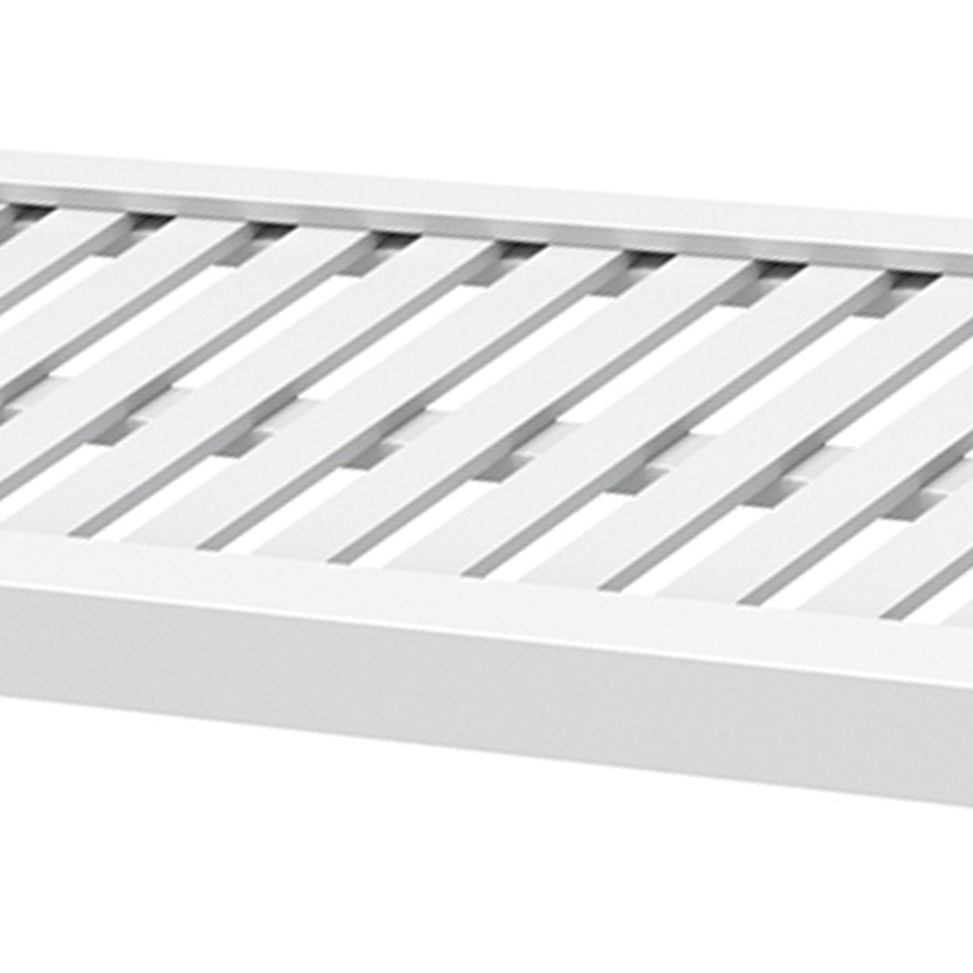 - Epoxy-coated steel with a neutral sleek white design complements other furnishings throughout the home