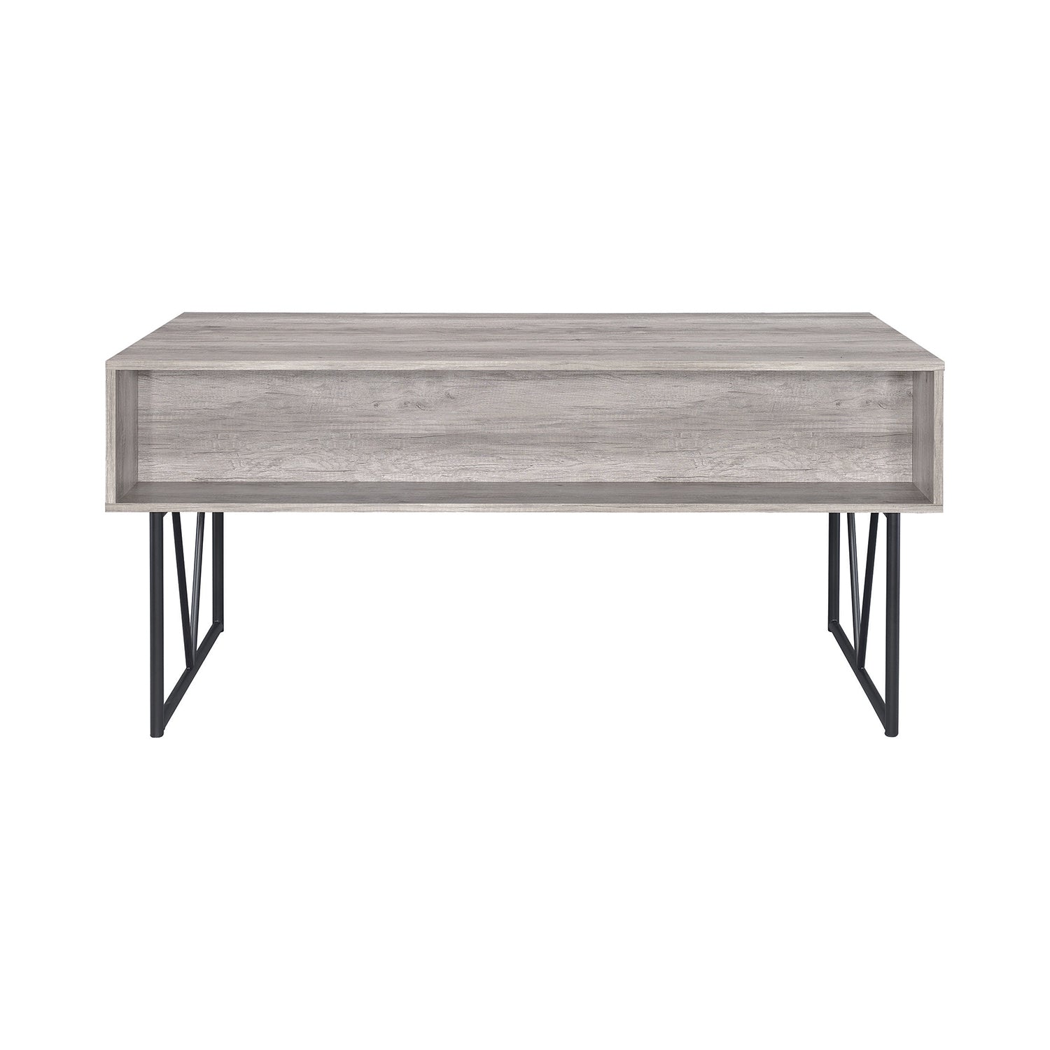 - The metal base and legs have a black finish that contrasts to the grey driftwood design