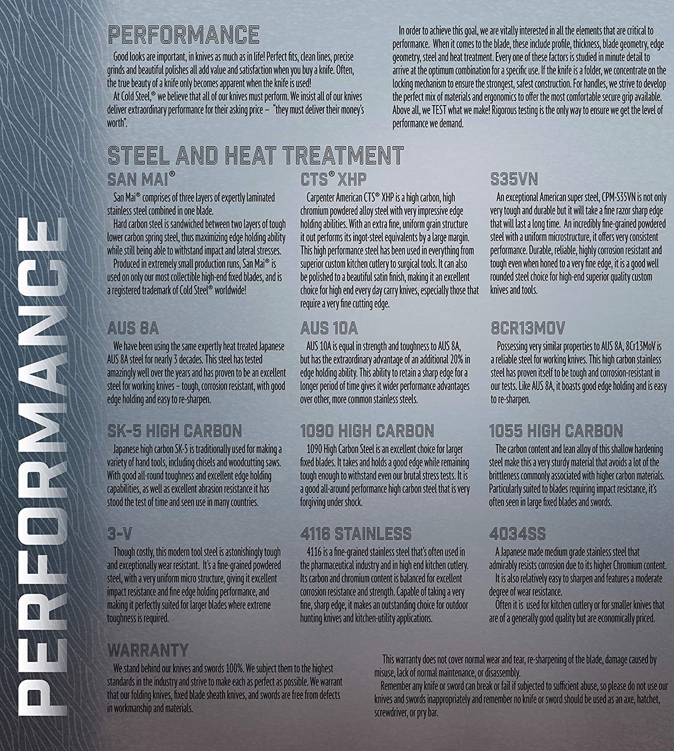 - Ground thin at the edge and honed to razor sharpness for unprecedented cutting, shearing, and piercing power while remaining remarkably resistant to bending, breaking, or chipping