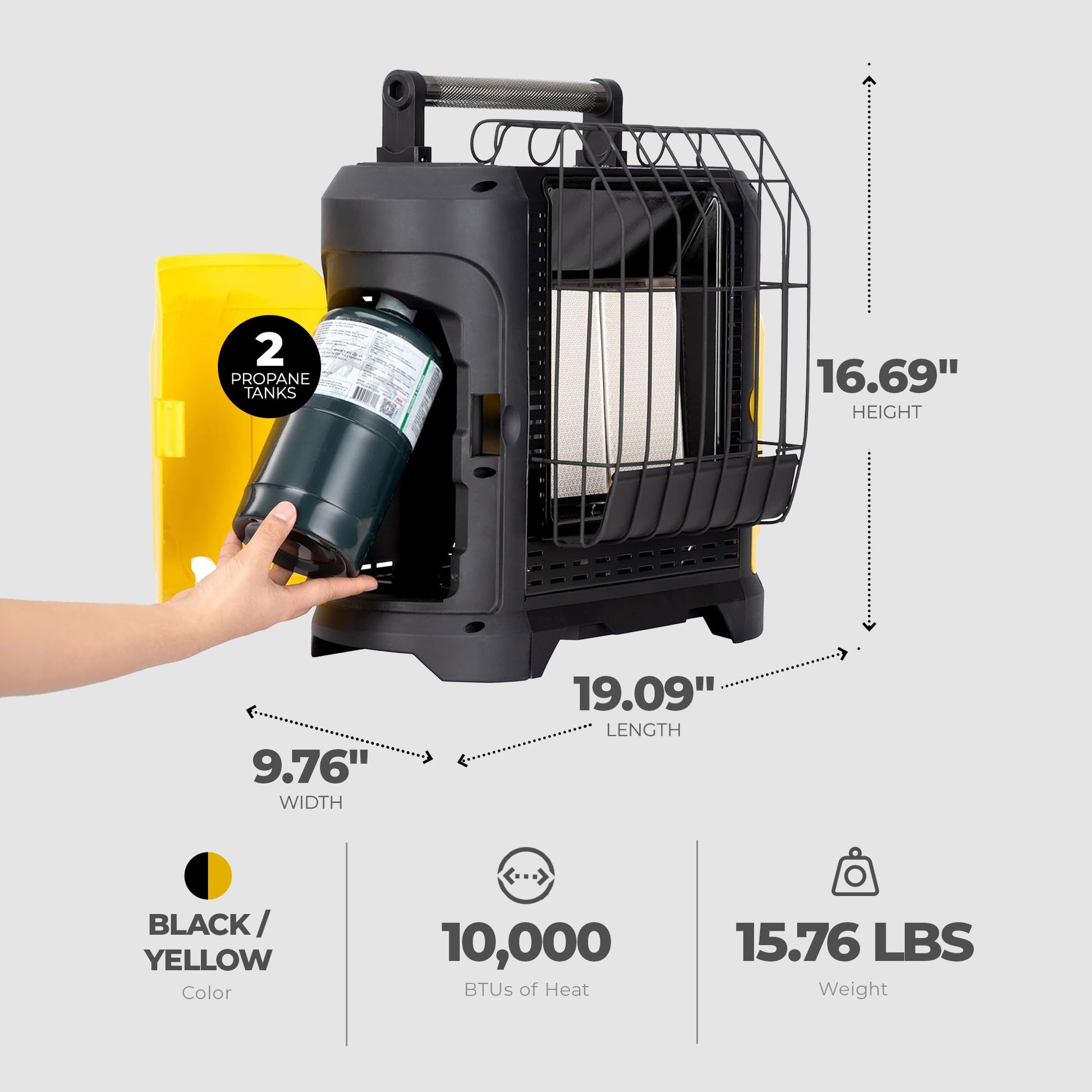 - Portable propane heater delivers a strong 10,000-BTU output, efficiently heating spaces up to 450 square feet, perfect for indoor or outdoor use
