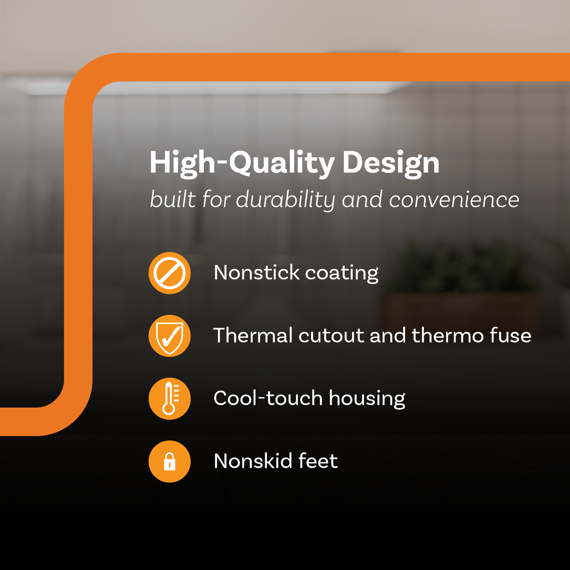 Elevate your kitchen experience with the Complete Cuisine CC-PN1200 Panini Maker, a culinary powerhouse designed to revolutionize your meal preparation. This sandwich press features a nonstick coating for easy cooking and cleaning and power-on and ready light indicators that provide a visual cue for optimal timing. The thermal cutout, thermo fuse, and cool-touch housing provide peace of mind during operation, and the nonskid feet offer stability. Plus, the included drip tray manages excess grease, ensuring a cleaner countertop.