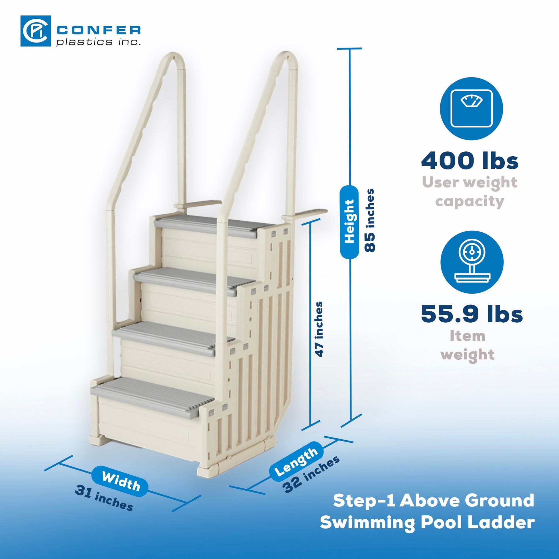 With the Confer Plastics Above Ground Swimming Pool Step, entering and exiting your swimming pool has never been more effortless.