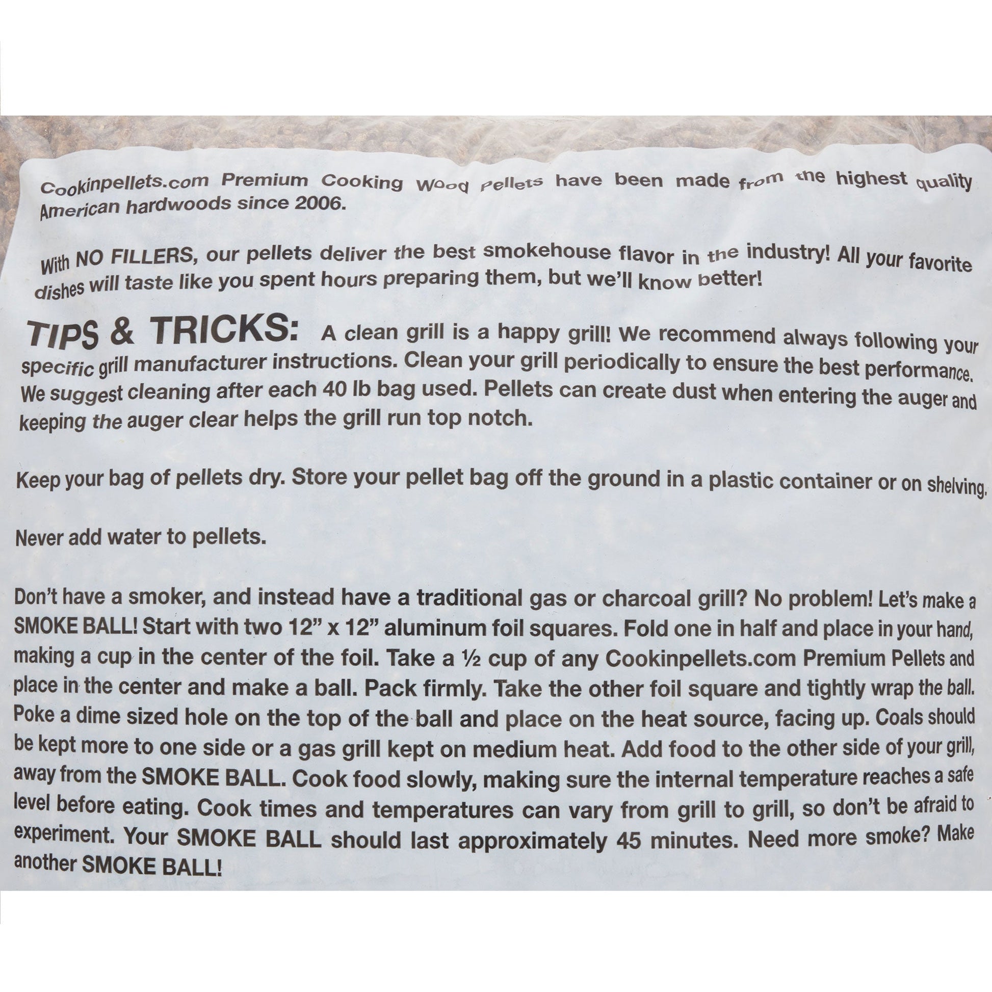 - Set of 2 pellet bags that introduce authentic smokey flavor to all your favorite backyard meats